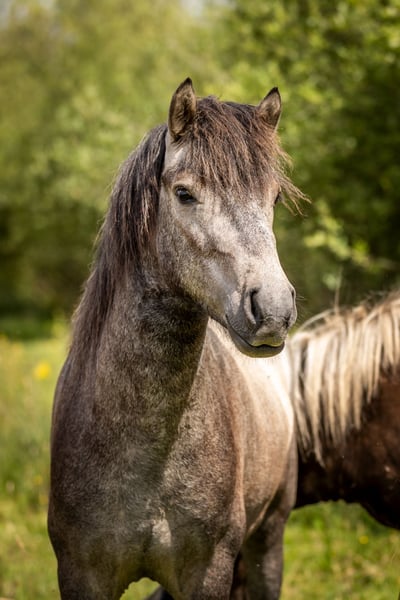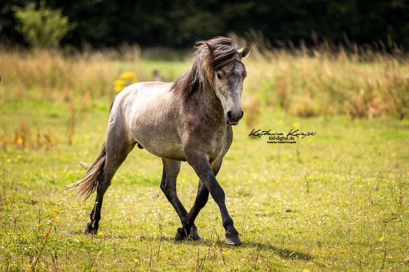 Mogli est un jeune hongre d'Aegidienberger très poli, intrépide et désireux d'apprendre. Depuis sa première année, Mogli a grandi au sein d’un troupeau de jeunes chevaux dans une réserve naturelle. Depuis octobre 2025, Mogli suit une formation de base et sera préparé à travailler sous la selle jusqu’au début février. Il apprend à être attaché, à être brossé, à être mené, travaille à pied, en activation duale, en extérieur, à l’entretien des sabots, en longe et double longe, à porter un filet et une selle, à s’habituer à la circulation routière, aux chiens, aux cyclistes, aux joggeurs, etc. Le père de Mogli est le prestigieux étalon d’Aegidienberger Menor GPZ. Menor est multiple champion d’Allemagne dans diverses disciplines de gaited sport, a reçu en 2009 et 2016 le titre de « Gaited Horse of the Year » et est l’Aegidienberger le mieux noté avec une note exceptionnelle de 9,5 pour sa conformation. La mère de Mogli est une jument islandaise à quatre allures. Meyja possède d’excellentes allures de base et un Tölt très clair. Elle participe avec succès à la Working Gaited Equestrian. C’est un cheval très amusant, notamment grâce à sa grande motivation et sa polyvalence. Avec cette lignée, Mogli promet d’être un cheval polyvalent et fiable pour la loisir comme pour le sport. Mogli recherche un cavalier prêt à poursuivre sa formation afin de progresser ensemble.