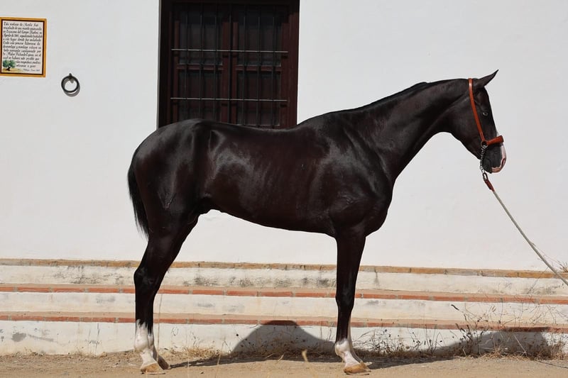Ekskluzywny młody ogier Achal Tekke. Z jednym kryształowoniebieskim okiem wygląda jak słynny Tokhtamysh. Obecnie ma 1,59 m i wciąż będzie rósł o około 3 cm. Lambrusko został wyeksportowany z Rosji, pochodzi z linii Gundogar i jest obecnie delikatnie zaczynany do jazdy. Charakteryzuje się dużą uwagą na jeźdźca oraz wrażliwością. Wcześniej przebywał w stadzie składającym się z 13 młodych ogierów. Nie jest płochliwy, ma młodzieńczy temperament. Ponieważ w Hiszpanii z pasji rozwijam hodowlę koni, Lambrusko jest dostępny do obejrzenia w Maladze.
