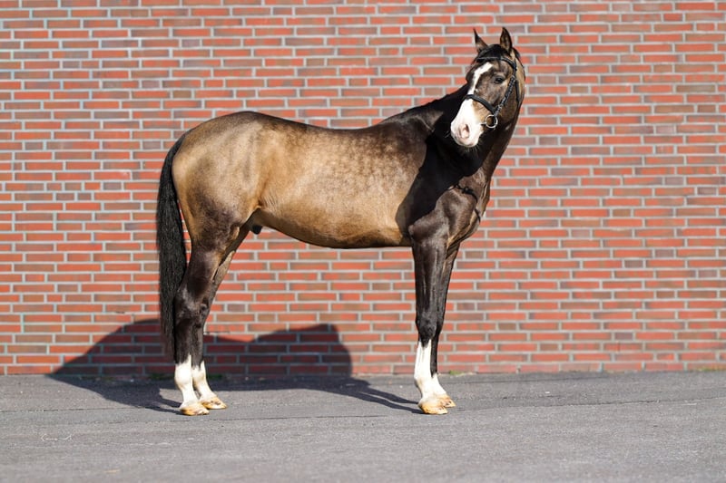 Mr. Bond to przepiękny ogier akhal-teke o wyjątkowym charakterze. Dzięki doskonałym podstawowym chodom, harmonijnej, pełnej typowości sylwetce oraz unikalnej umaszczeniu przyciąga wszystkie spojrzenia. Przekonuje nie tylko wizualnie, ale także sportowo: Mr. Bond posiada duży potencjał skokowy i zawsze jest gotowy do pracy, wykazując czujność i zaangażowanie. Jego zrównoważony, przyjemny charakter czyni go niezawodnym partnerem na co dzień. Ogier jest dobrze zbudowany, poprawny pod względem fundamentów i wyróżnia się swoją atletycznością oraz naturalną obecnością. Bezpośrednio od hodowcy. Oczywiście dostępne są aktualne zdjęcia rentgenowskie bez zmian. To wyjątkowa koń dla jeźdźców poszukujących czegoś niezwykłego.