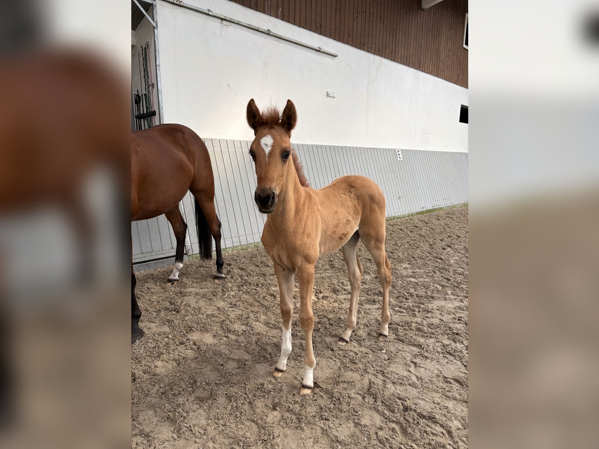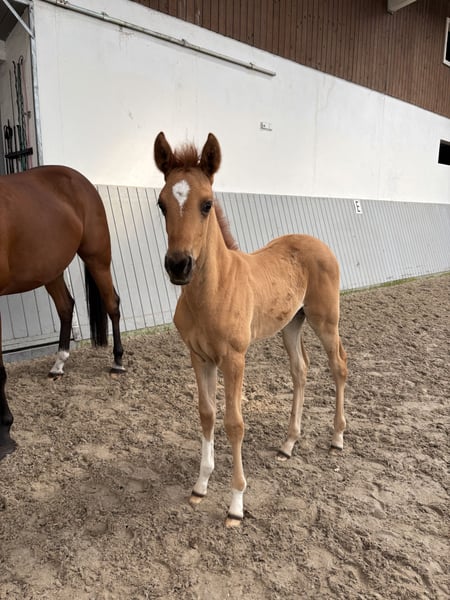Stutfohlen aus eigener Zucht, sehr lebendig und aufgeschlossen. Vater ist ein Palomino Hengst. Schöne Gänge mit viel Potenzial