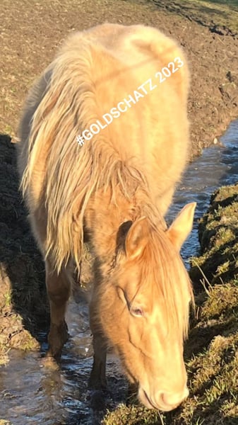 Beautiful golden colored mare from 04.06.2023. She grows up robust in the mare herd. She is people-oriented and respectful in daily handling. Her fast and well-balanced movements make her the perfect all-rounder. She knows cars, tractors, children, cyclists, cows and much more. She will also stand in the stream to eat the fresh greenery on the slope. If you are looking for a robust, compact horse, then she is the one for you. It's worth taking a look. Everything else on the phone. You are looking for something special, then she is the right one
