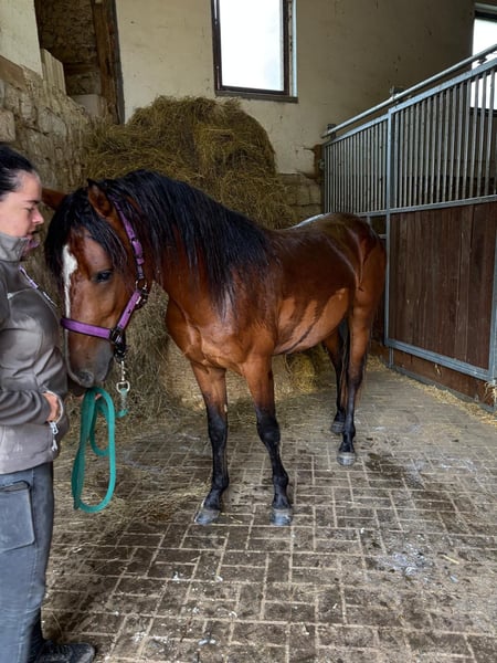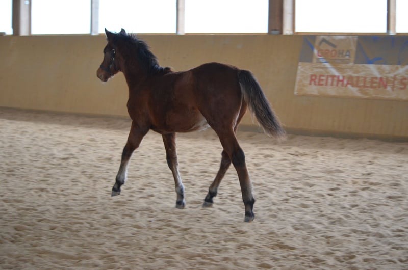 In vendita il nostro puledro stallone Morganhorse 2023, Barney, proveniente dalla nostra MtnTop Alegria di BarNon Pleasure. Ha documenti originali americani ed è registrato presso l'AMHA come LHD Mister Boombastic. Inoltre, ha un passaporto equino ed è risultato negativo al test PSSM1. Barney cresce insieme ad altri due puledri stalloni in ampi pascoli collinari, in un allevamento all'aperto tutto l'anno nella regione di Erfurt. Il posto di allevamento può essere utilizzato anche dopo l'acquisto, previo accordo con il proprietario del maneggio. A due anni, Barney attualmente misura 150 cm. Ci aspettiamo un'altezza finale di circa 156 cm. Barney può essere facilmente prelevato dal suo gruppo di giovani stalloni e riportato indietro. Dal maniscalco si mostra assolutamente tranquillo. Ha anche ottenuto senza problemi il completo stato vaccinale. È abituato ai viaggi in trailer fin da piccolo. Barney ha tre andature molto buone e ben cadenzate e si distingue per la sua assoluta calma nel maneggiarlo. Reagisce con interesse ma in modo rilassato a cose/situazioni conosciute o nuove. Con la sua mobilità, il suo carattere e la sua genetica, offre condizioni ideali per il salto ostacoli o per l'uso alla guida. Sua sorellastra materna ci regala soddisfazioni nel dressage, nel salto e come cavallo da carrozza e da tempo libero. Il potenziale riproduttivo di Barney è già stato dimostrato vincendo la classe dei puledri nel 2023 al Day of the Morgan Horse in Assia. Anche alla sua prima esperienza in un ambiente estraneo, con molto pubblico, si è mostrato assolutamente calmo e facilmente gestibile. Entro quest'autunno dovremo decidere se Barney potrà rimanere stallone o meno. Per non ostacolare i vostri piani di allevamento, contattateci pure via email o telefonicamente al +49 170 1292274. Siamo felici di ricevere le vostre domande e considerazioni.