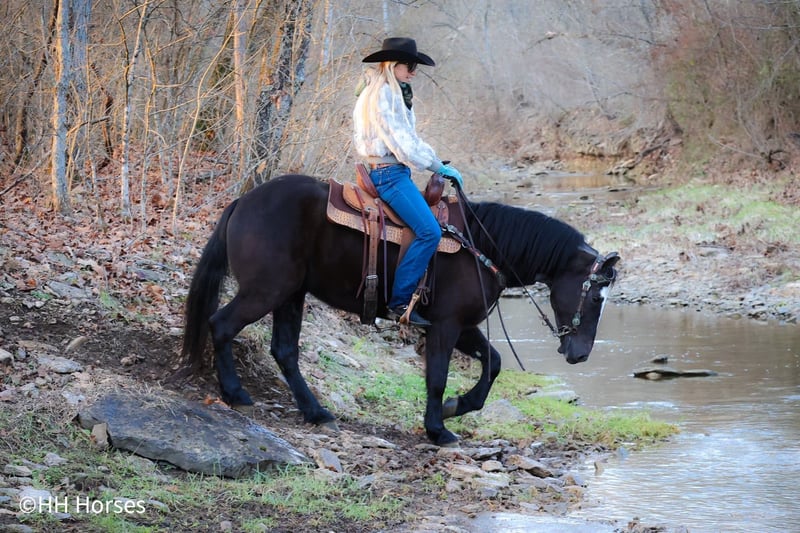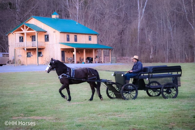 ONLINE AUCTION Place your bids at www.PlatinumEquineAuction.com Starting Bid $3500 Auction ends March 2nd, 2025 Need a new saddle? Check out White Rock Saddles on our website or Facebook! This is “PICASSO”, a very flashy BLACK MORGAN PAINT CROSSBRED GELDING that is broke to ride and drive. He stands 14.2 hands tall and is 5 years old. He is broke to farm machinery, he has pulled, carts, wagons, and sleighs. He is also broke to ride and will trail ride bravely anywhere you want to go. He is very stylish and a nice mover. He is extra fancy with a loud blaze face. He has lots of heart, stamina, and grit. He can go all day long and pull or carry a load. He has excellent ground manners, he stands to harness, hitch, tack, mount, and groom. He rides out alone bravely, he is traffic safe, and has had Amish children ride him to school and drive him to school. He has been driven on the main roads to town to the food store and will stand quietly to the buggy return. He is a very fun horse to ride that can ride in the pastures to check cattle and looks cool under English or Western tack in the arena. He is a very cute gelding with eye appeal, ride, drive, and sense. For more info or to make a Buy It Now offer contact HH Horses Erin 304-238-4155. Located in Flemingsburg, KY. ONLINE AUCTION Place your bids at www.PlatinumEquineAuction.com Starting Bid $3500 Auction ends March 2nd, 2025 Need a new saddle? Check out White Rock Saddles on our website or Facebook!