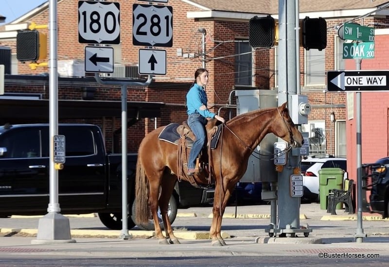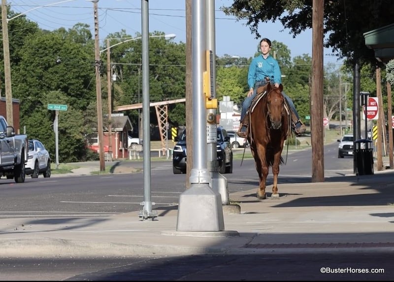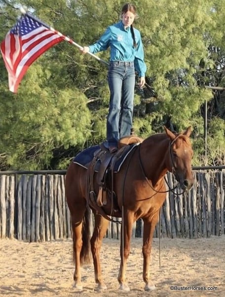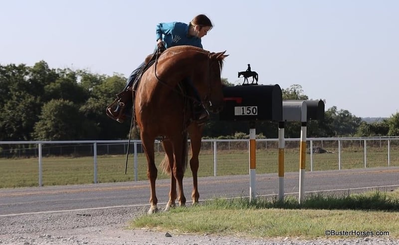 ONLINE AUCTION Place your bids at www.PlatinumEquineAuction.com Starting Bid $3500 Auction ends September 8th, 2024 Need a new saddle? Check out White Rock Saddles on our website or Facebook! “Sky” – 15.2H, 2019′ chestnut AMHR Morgan gelding… Sky is a unique registered AMHR Morgan gelding – America’s first developed breed! This breed was a huge part of our country and a big part of our history. It is said that you will never find a more enjoyable horse for the soul, than a Morgan. Their friendly people pleasing personality is exceptional. We do not get our hands on these very often!!! These are so sought after for their extremely sweet and kind personality and Sky is no exception. He absolutely loves people and would much prefer with a human than out with his buddies. He is about as not-hear/buddy/barn sour as a horse could come! He would rather be on your front porch stealing your coffee than out playing with the herd. Sky rides extremely well and is naturally about as uncomplicated to operate as they come. Sky guides anywhere you point him easily, he is exceptional in town and out on the trail. He has a big ground covering walk, easy smooth natural foxtrot, exceptionally smooth, soft lope and catches both of his leads, and he has a great huge stop if you just mention “whoa”. Sky seeks attention, but is also very careful, aware of his handler, and always eager to do what he is asked – there is a reason those who know this breed swear by them, these guys have been hand selected for 250 years for their extremely easy to be around dispositions. Morgans are known for their extra stout, strong stature, and Sky is on the large size, even for a Morgan. He would be great for anyone looking for a larger built horse, he will fill out just about anyone’s leg, and be able to comfortably carry just about any size of rider! There are not many specific horse breeds, that Disney made a whole movie out of! Don’t miss out on an opportunity to own one of these amazing horses! If you are looking for a personal horse, pet, and life horse, do not overlook Sky. He is young and has a whole lifetime ahead of him to live with his new family. Sky was just trimmed last week and he has absolutely excellent feet. His teeth were also just done by an equine dentist two weeks ago – at the same time he had his sheath cleaned, his ears preemptively treated for ticks, and he was also power packed wormed. Sky is also good to shoe, but he has great feet and goes really well barefoot – if his new owner prefers him to be shod, we can have him shod prior to him heading to his new home. He will arrive at his new home up-to-date and ready to go to work! To see additional videos, go to our website: BusterHorses.com or our Facebook page Buster Horses. Please call anytime for more information at 214-605-7174 Sky is located in Weatherford, TX – one hour from Dallas / Fort Worth International Airport. He is an easy day trip or fun overnight trip to come try out, from anywhere! We are experienced, knowledgeable sellers, and we can help with quickly arranging affordable shipping to any buyer’s location – we have experience shipping worldwide – including regularly to Hawaii, Canada, Mexico, Europe, and South Africa. Check our website for buyer reviews, more videos, additional info: etc: https://busterhorses.com/Sky. ONLINE AUCTION Place your bids at www.PlatinumEquineAuction.com Starting Bid $3500 Auction ends September 8th, 2024 Need a new saddle? Check out White Rock Saddles on our website or Facebook!