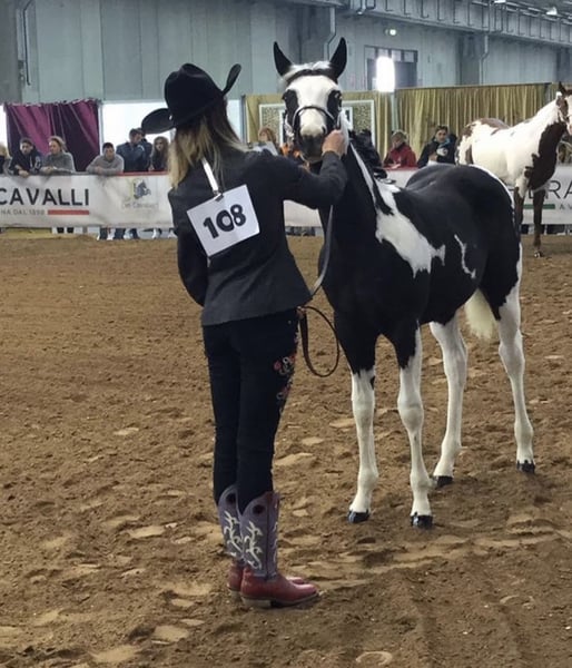 KIDS CLASSIC BADGER Beautiful American Paint Horse, solid-colored (despite this, very gentle), 9 years old. Height: 15.0–15.1 hh at the withers. IMPORTANT GENETICS (son of ERC KOLOR ME KOOL, who passed away a few years ago). He participated in the futurity (conformation class) at just 6 months old at Verona Horse Fair, winning the class and taking second place in the MOST COLOR category! US documents and Coggins test up to date. He is an exceptional horse with a heart of gold! I am looking for a five-star family because I want the best for him – he truly deserves it! He loves jumping, enjoys going for rides, and is fearless. He is regularly ridden both in halter and free. He has been with me since he was 6 months old. He has always been barefoot (never shod). Therefore, he has only one owner! He has no health issues. The only reason I am seeking a new family is that I have made different life choices. No time-wasters or price shoppers, please. For more information, contact +39 3917059140.