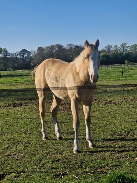 Met trots bied ik twee lieve Paint Horses aan, beide gefokt uit mijn eigen merrie Indian Slide. De merrie is ingeschreven in het APHA stamboek. Beide veulens zijn geregistreerd bij het APHA en hebben een fijne, eerlijke basis meegekregen. De veulens zijn opgegroeid in een gezonde, sociale omgeving. Ze zijn bekend met dagelijkse verzorging en omgang. 🐴 Nugget – Indian Honey Bumblebe - Hengst van maart 2025 - Kleur: Champagne gold - Huidige schofthoogte: ca. 140 cm - Verwachte eindhoogte: 150 – 155 cm - Afstamming: Bumblebee Gun Olena - Vraagprijs: €10.000 Nugget is een jonge hengst met een speels, energiek en nieuwsgierig karakter – een echte “kleuter” die de wereld nog volop aan het ontdekken is. Hij toont veel persoonlijkheid en potentie, en zal met de juiste begeleiding uitgroeien tot een prachtig paard. Zijn bijzondere champagne gold kleur maakt hem een echte blikvanger. Hij heeft een correcte bouw en laat veel aanleg zien voor de toekomst, zowel recreatief als in de sport of fokkerij. Algemene informatie - Beide veulens zijn APHA geregistreerd - ingeënt - Paspoort - Bekend met hoefsmid - Opgegroeid in een natuurlijke, sociale omgeving - Staan 24/7 weidegang - Bekend met basis omgang en dagelijkse verzorging Ze worden alleen verkocht aan een passend en goed thuis. Kwaliteit en welzijn staan voorop. Handelaren hoeven niet te reageren.
