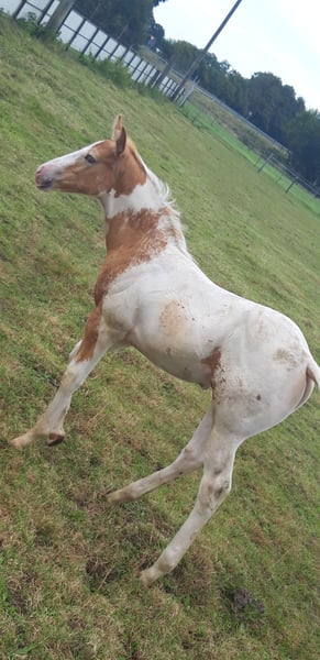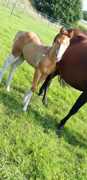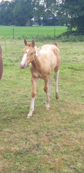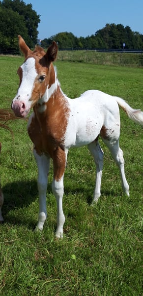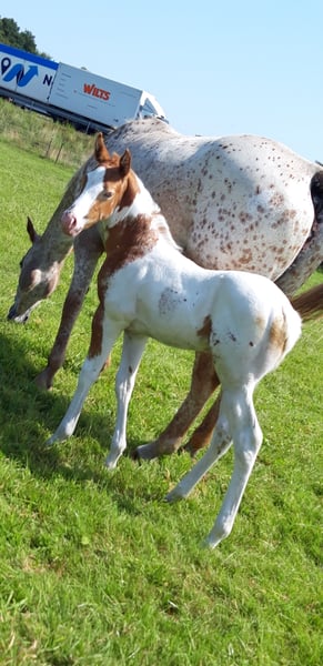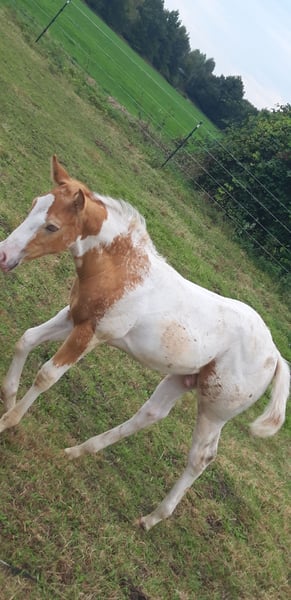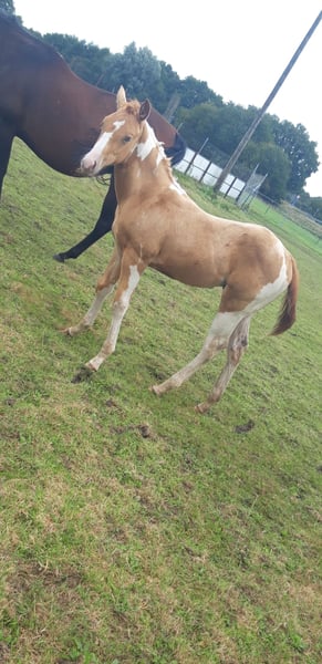 If you are looking for something truly special, CHARLIE and FLASH are exactly right for you... My foal crop is really something to see... CHARLIE is a Pintaloosa with a chestnut spotted appearance... He was born on July 31, 2025... FLASH is a Paint in gold champagne tobiano, he was born on June 19, 2025... Their father is INDIAN BIGSTEP, a Paint Horse stallion with a great character, body, and charm; he has also been successfully shown in the Netherlands... CHARLIE's mother is my typy, strong Appaloosa mare Bella with a great character and good movements... FLASH's mother is my typy Quarter mare Josey, she is also very people-oriented, good-natured with her character... Both foals will receive a chip and an E-pass... They already have a super strong build. Both have an excellent body structure, show great muscles, and beautiful movements... They will both have a final height of approximately 155 cm +/-. They are learning the foal ABC and everything else one needs to know at this age... Both are curious, playful, and trusting towards humans... Since we live directly on 2 main roads, they are familiar with all kinds of loud noises, such as tractors or road traffic or sirens, and are not easily disturbed... Price for Charlie: 4000 Euros Price for Flash: 5000 Euros If someone wants both, we could discuss the price...
