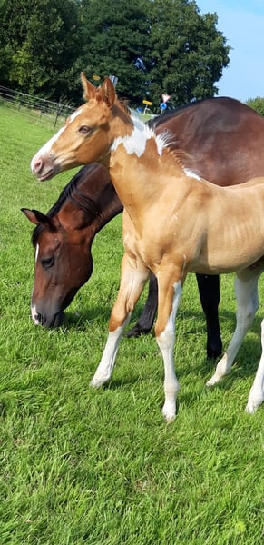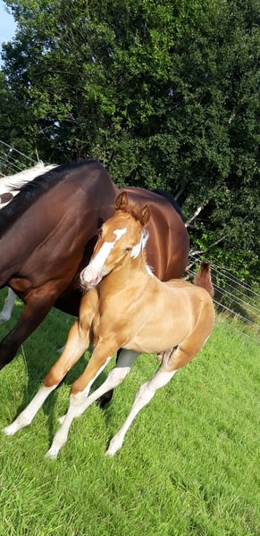 Als Sie auf der Suche nach etwas ganz Besonderem sind, sind Sie bei CHARLIE und FLASH genau richtig... Mein Fohlenjahrgang kann sich wirklich sehen lassen... CHARLIE ist ein Pintaloosa in Fuchsschecken-Optik mit Punkten... Er wurde am 31.07.2025 geboren... FLASH ist ein Paint in Gold Champagne Tobiano, er wurde am 19.06.2025 geboren... Ihr Vater ist INDIAN BIGSTEP, ein Paint Horse Hengst mit großartigem Charakter, beeindruckendem Körperbau und Charme. Er war auch erfolgreich in Shows in den Niederlanden... CHARLIES Mutter ist meine kräftige, charaktervolle Appaloosa-Stute Bella mit tollen Bewegungen und einem freundlichen Wesen... FLASHS Mutter ist meine typvolle Quarter-Stute Josey, ebenfalls sehr menschenbezogen, gutmütig und mit einem tollen Charakter... Beide Fohlen erhalten einen Chip und einen E-Pass... Sie sind bereits jetzt sehr kräftig gebaut. Beide besitzen einen hervorragenden Körperbau, zeigen tolle Muskeln und schöne Bewegungen... Sie werden voraussichtlich beide ein Stockmaß von ca. 155 cm (+/-) erreichen. Sie lernen die Grundlagen des Fohlen-ABC und alles, was man in diesem Alter wissen sollte... Beide sind neugierig, verspielt und zutraulich gegenüber Menschen... Da wir direkt an zwei Hauptstraßen wohnen, sind sie an laute Geräusche gewöhnt, wie zum Beispiel Traktoren, Straßenverkehr oder Blaulicht, und lassen sich davon nicht aus der Ruhe bringen... Preis für Charlie: 4000 Euro Preis für Flash: 5000 Euro Falls Interesse besteht, die beiden zu erwerben, lässt sich über den Preis noch sprechen...
