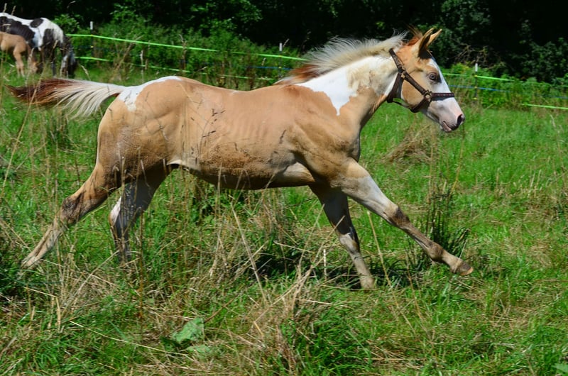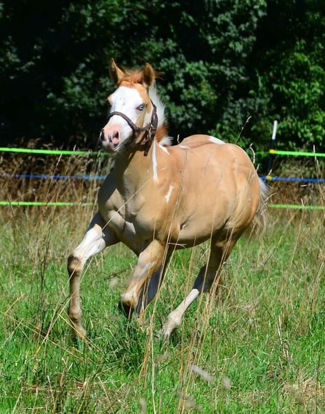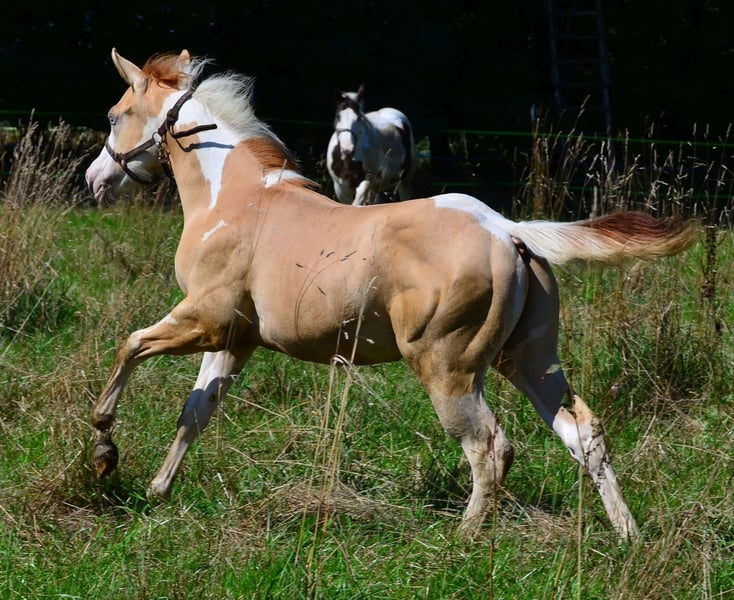 Jackson jest homozygotyczny dla genu Tobiano. Zawsze będzie miał kolorowe źrebaki. Ma promiennie niebieskie oko. Genialny rysunek i wspaniała sylwetka! Oczywiście ma 7 Panel N/N. Dorasta w odpowiednich warunkach na dużych przestrzeniach w dużej stadzie. Posiada papiery od APHA i paszport od PHCG.