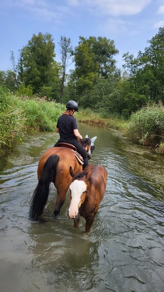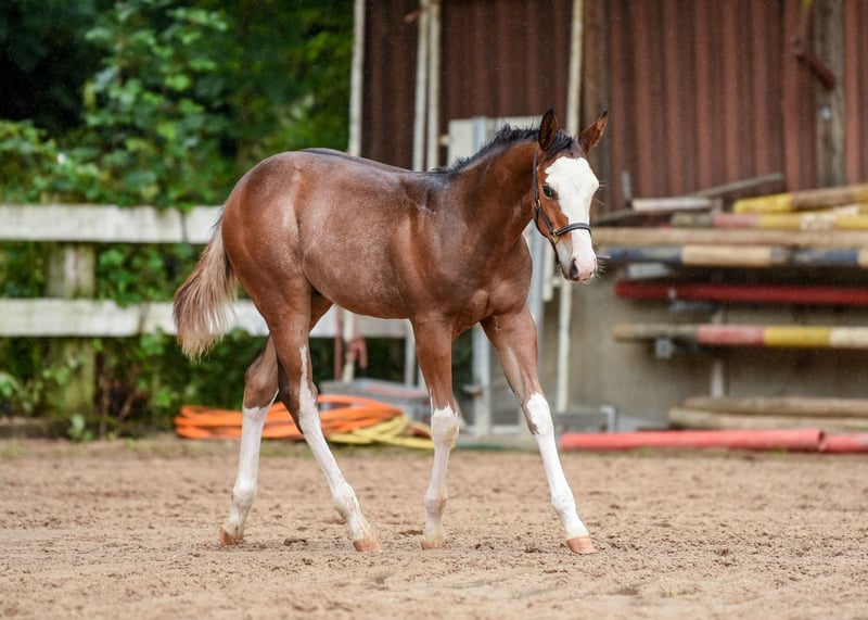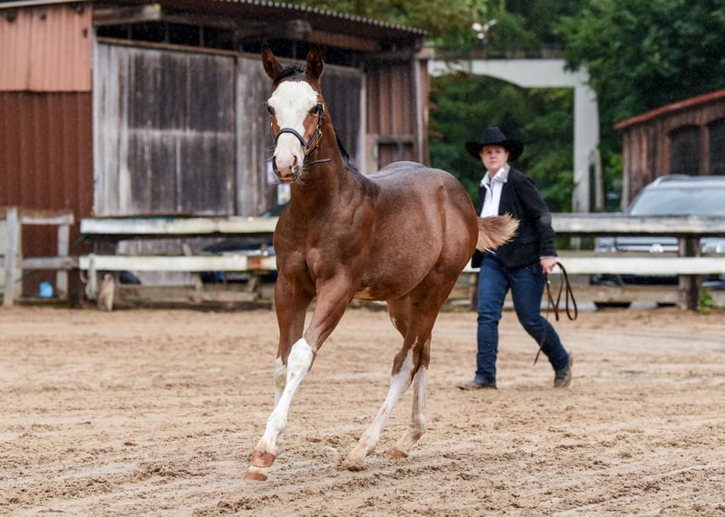 Outstanding colt born in April 2025, Bay with Overo pattern and a Jacke. Panel N/N. Best of Cowboy, affectionately known as "Franz," is a very friendly foal with an excellent pedigree and a solid, balanced build, impressing with his wonderful temperament. His dam is a daughter of the top sire RL Best of Sudden. She has achieved numerous successes in Western riding and is a true all-rounder. His sire, Original Cowboy, is a highly renowned stallion from the USA. He is now available for sale. Feel free to come and see this fantastic colt without obligation. www.paint-horse-ranch.de