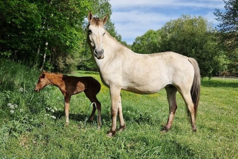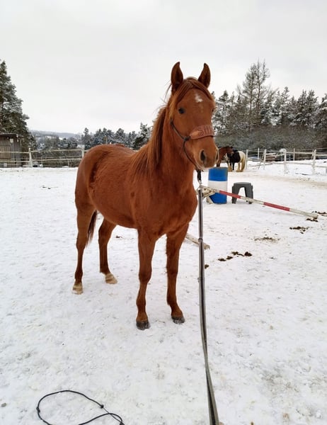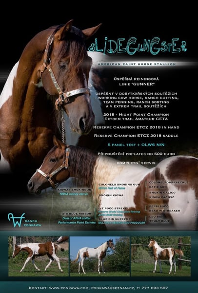 This exceptional young colt is a truly special prospect. He is a super stallion foal with a fantastic character – talented, hardworking, and very people-oriented. He enjoys human contact, is willing to learn, and shows a great attitude toward work. He already has a solid foundation: he is started on the lunge line, works calmly and confidently on long reins, and is used to going out on his own. He handles all basic care perfectly – he willingly lifts all four feet and stands quietly for hoof trimming. Thanks to his mindset and ability, he is very promising for hobby sport, but he will also be a wonderful partner for relaxed trail rides and leisure riding. His dam is a Fjord × Czech Warmblood (ČT), providing him with a strong, reliable base and good movement. His sire is the very talented Paint stallion Slidegungster, a son of the legendary Colonels Smoking Gun (also known as Gunner), renowned worldwide for his exceptional performance and outstanding character. The colt is 100% healthy, correct, and developing very well. With his pedigree, temperament, and versatility, he represents an excellent future partner for someone looking for a kind, willing, and healthy horse.
