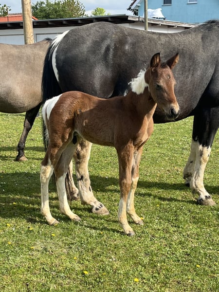 **For Sale: Paint Horse Stallion** Available at a bargain price until August 3, 2025!!! For sale is a promising Paint Horse stallion, born in 2024. This young stallion impresses with his striking Tobiano pattern in all colors, making him a real eye-catcher. With a height of 150 cm, he is ideally suited for Western riding. His friendly nature and willingness to learn make him an excellent partner for ambitious riders looking for a reliable and talented companion. This stallion is not only a head-turner but also a horse with great potential for the future. If you are interested, we look forward to your contact to share further information and arrange a viewing appointment.