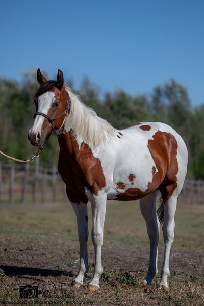 Verkaufe American Paint Horse Hengst – Tobiano, geb. 06.2024 Dieser beeindruckende American Paint Horse Hengst beeindruckt durch seine außergewöhnliche Farbgebung im Tobiano umfasst und für seine typische Eleganz und Ausstrahlung sorgt. Geboren im Jahr 2024, ist er bereits jetzt ein vielversprechender Nachwuchs, der mit seinem geschätztem Endstockmaß von ca. 151 cm perfekt für den Westernreiten-Sport geeignet ist. Seine Bewegungen sind flüssig, taktsicher und kraftvoll, was ihn zu einem idealen Partner für ambitionierte Westernreiter macht. Durch seine freundliche und aufgeschlossene Art ist er zudem leicht zu handhaben und zeigt eine ausgeglichene Charakteristik. Dieses Pferd ist die perfekte Wahl für Reiter, die einen vielseitigen, gut erzogenen Nachwuchshengst suchen, der sowohl im Westernreiten als auch in der Zucht überzeugen kann. Bei entsprechender Förderung verspricht er eine vielversprechende Zukunft im Westernsport. Bei Interesse stehe ich gerne für weitere Informationen und eine Besichtigung zur Verfügung. Das Pferd steht aktuell in Ungarn / Izsák auf der El Bronco Ranch