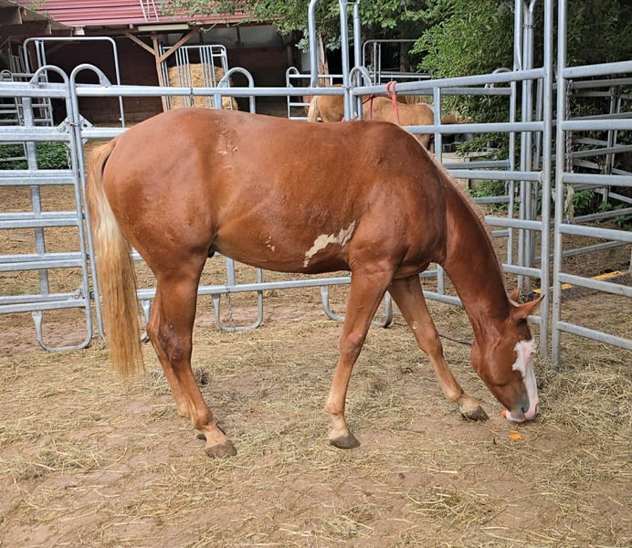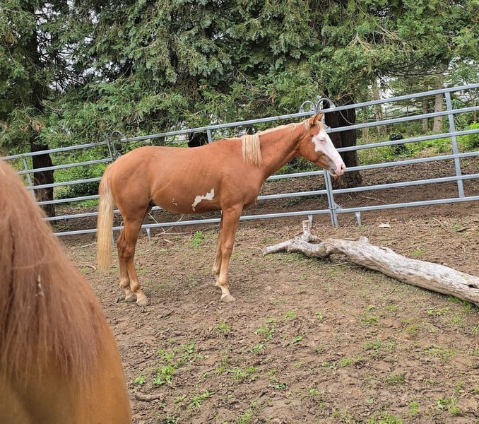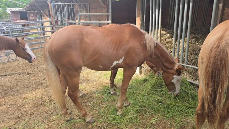 LF Masson Whiz Gun – ten wspaniały młody ogier Paint Horse, urodzony w 2024 roku, z przewidywaną końcową wysokością około 152 cm, przyciąga uwagę swoją efektowną umaszczeniem. Całość dopełniają jego niebieskie oczy oraz poprawna budowa ciała. Jego charakter jest wyjątkowy – zawsze w dobrym nastroju i bardzo spokojny. Chłodny i odważny, pewnie podchodzi do otoczenia. Masson zna podstawy opieki nad źrebakiem, jest uwiązkowy i lubi być czesany. Oczywiście zna kowala i weterynarza, jest regularnie szczepiony i odrobaczany. 5-panel n/n po rodzicach. Młody ogier ma dobrą rodowód w dyscyplinie reining. W jego rodowodzie znajdują się liczne gwiazdy reiningu, takie jak Colonels Smoking Gun, Topsail Whiz, Peppy San Especial oraz Gatling Gun. Jeśli szukasz niezawodnego, wszechstronnego źrebaka, ten koń jest idealny. Obecnie wykazuje nieco sztywniejszy krok tylnych kończyn – nie zgina stawów skokowych w pełni – jednak został poddany badaniu rentgenowskiemu i nie stwierdzono żadnych nieprawidłowości. Dlatego cena jest atrakcyjna.