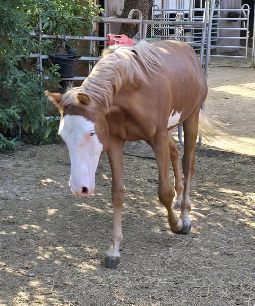 LF Masson Whiz Gun – This wonderful young Paint Horse stallion, born in 2024 and estimated to reach a height of approximately 15.2 hh, is sure to turn heads with his striking markings. His overall appearance is further complemented by his blue eyes and correct conformation. His character is equally exceptional: always good-humored and very well-behaved. Laid-back and fearless, he shows confidence in his environment. Masson is familiar with basic foal handling, halter-trained, and loves being groomed. He is also accustomed to the farrier and veterinarian, regularly vaccinated and dewormed. 5-panel N/N testing inherited from his parents. The colt has a solid reining pedigree, including renowned reining horses such as Colonels Smoking Gun, Topsail Whiz, Peppy San Especial, and Gatling Gun. If you are looking for a reliable, versatile young horse with great potential, he is an excellent choice. Currently, he exhibits a slightly stifled hind leg movement, with limited flexion at the hock – this has been examined via X-ray and shows no abnormalities. This is reflected in the favorable price.