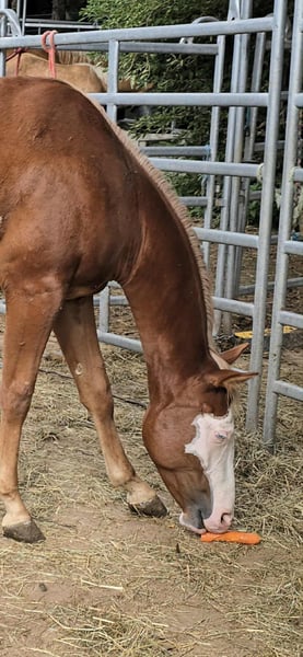 LF Masson Whiz Gun - Este maravilloso potro de raza Paint Horse, nacido en 2024 y con una estatura estimada de 152 cm, llama la atención por su llamativo patrón de color. Su aspecto se complementa con sus ojos azules y su estructura corporal correcta. Su carácter es único: siempre de buen humor y muy tranquilo. Es confiado y valiente, mostrando una actitud segura ante su entorno. Masson está familiarizado con el manejo básico de potros, es halterado y le encanta que lo cepillen. Por supuesto, conoce al herrador y al veterinario, y está vacunado y desparasitizado regularmente. Tiene un perfil de 5-panel n/n de sus padres. El potro tiene una buena ascendencia en reining. En su pedigrí figuran varias figuras destacadas del reining, como Colonels Smoking Gun, Topsail Whiz, Peppy San Especial y Gatling Gun. Si buscas un caballo joven confiable, versátil y con potencial, este es el indicado. Actualmente presenta un patrón de movimiento algo tenso en la parte trasera, ya que flexiona parcialmente las articulaciones del garrón, pero ha sido examinado mediante radiografías y no presenta anomalías. Por ello, el precio es muy atractivo.
