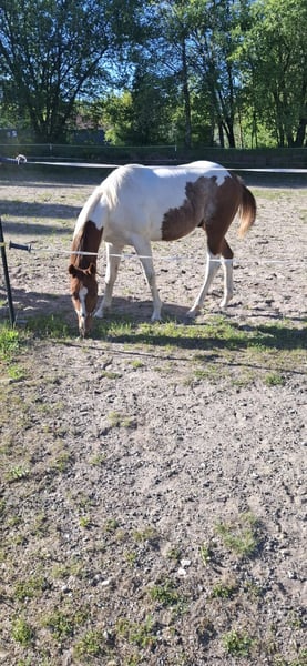 Be My Painted Spook is a true eye-catcher. The Paint Horse stallion enchants not only with his striking appearance but also with his excellent pedigree. Monty was foaled in 2024 and is expected to reach a height of approximately 15.2 hh. He has a correct conformation and is already well-muscled. Monty is curious but also cautious in handling. At the time of sale, he will be familiar with basic foal training, and will be dewormed and vaccinated according to his age. He has tested n/n on the 6-Panel genetic test inherited from his parents. Monty boasts a very strong bloodline geared towards Reining and Cutting disciplines. His sire is the highly successful show stallion Best Spook, a proven sire with a 90.9% approval rate at breed inspections. He is an Intermediate Trophy Champion, Open Bronze Trophy Champion, European Senior Reining Champion (Open), AQHA Open ROM, World Show Qualifier Senior Reining, and more. Monty's dam is a daughter of Tru Docscherokee out of a Spooks Cow Smart mare. His dam is available for purchase to a suitable home.