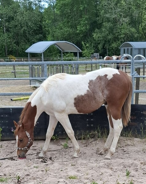 Be My Painted Spook ist ein echter Eyecatcher. Der Paint Horse Hengst verzaubert nicht nur durch seine tolle Optik, auch seine Abstammung ist erstklassig. Monty ist 4.24 geboren und wird ein geschätztes Endmaß von 152 cm bekommen. Er steht auf einem korrekten Fundament und ist jetzt schon gut bemuskelt. Monty ist neugierig aber auch vorsichtig im Umgang. Bei Abgabe kennt er das Fohlen ABC und wird altersentsprechend entwurmt und geimpft. 6-Panel n/n über die Eltern. Monty hat eine sehr gute Abstammung Richtung Reining/Cutting. Der Vater vom Kleinen ist der sehr erfolgreich geshowte QH Hengst Best Spook, Körungssieger mit 90,9%. Intermediate Trophy Champion, Open Bronze Trophy Champion, European Champion Senior Reining Open , AQHA OPEN ROM, World Show Qualifier Senior Reining uvm. Montys Mutter ist eine Tochter von Tru Docscherokee aus einer Spooks Cow Smart Tochter. Seine Mutter kann bei passendem Zuhause auch erworben werden.