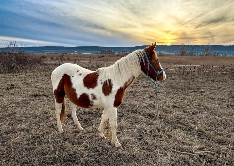 Sehr gelassener zutraulicher Jährlings -Hengst abzugeben. Er wurde am 13.6.24 geboren . Aus eigener Zucht . Farbe Bay . APHA Papier. Die letzten Fotos zeigen ihn als Fohlen . Über seinen Vater *DANCING BOYS OKIE* und seine Mutter *KIWAS LITTLE CHEYENNE* ist er tobiano homozygot (vererbt immer seine Scheckung) und 7 - fach Panel negativ . Er hat also Reining - und Allround- sowie Cowhorse - Gene . Er wird sicher ein guter Partner im Freizeit Reiten werden . Er wäre aber auch für den Sport offen . Er muss aber kein Hengst bleiben. Er kennt Hunde , Katzen und auch Lärm von Landmaschinen und zeigt dabei seinen unerschrockenen ruhigen Charakter. Leichte Nach Aussen Stellung des rechten Hufes ab dem Fesselgelenk , was ihn aber in keiner Weise beeinträchtigt in allen 3 Gangarten . Ist bisher deutlich besser geworden und wird bei entsprechender Hufbearbeitung sich im Laufe des weiteren Wachstums noch verbessern . Daher der angesetzte Preis . Er wächst mit anderen Junghengsten auf und war vorher mit seiner Mutter in einer gemischten kleinen Herde auf großen Koppeln . Er gibt brav die Hufe , Hänger ist kein Problem , kennt bereits Fellsattel und leichte Gewichte , ist natürlich halfterführig, geimpft , entwurmt . Er ist neugierig und offen , bleibt stets gelassen . Er kann natürlich gern besichtigt werden .