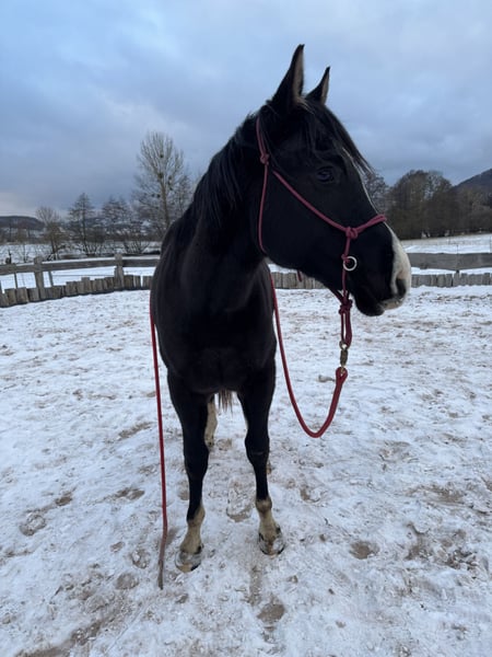 Geb: 04/24 PHV STYLE HARRY POTTER DAM: MISS CLASSIC STYLE FA (Impressive, Cash, Commander) SIRE: ROYAL WASH COOKIE Vor kurzem war die Pferdewaage da. Aktuell ist er ca 1,50m groß und 400kg schwer. Geschätztes Endmaß ca 1,58m-1,60m. Die Eltern waren beide auch so groß. Harry kennt alles, was ein Pferd in dem Alter kennen kann. Er kennt Spaziergänge, täglichen Koppelgang, Hufe geben, Schmied, putzen und wächst mit einem schweren Warlmbluthengst gemeinsam auf. Verladetraining würde ich zeitnah starten, aber er lernt sehr schnell und hatte noch nie schlechter Erfahrungen mit dem Hänger gemacht. Also sollte das kein Problem sein. Er zeigt noch keinerlei Hengst-Anzeichen gegenüber anderen Pferden. Er wird täglich an- und abgehalftert und zur Koppl geführt und wieder geholt. Somit kommt er täglich in Berührung mit Menschen. Er ist sehr sensibel im Umgang und lässt sich überall anfassen. Anbinden, putzen und Mähne einflechten ist alles kein Problem. Traktor, Hunde und die täglichen Stallgeräusche machen ihm keine Panik. Auch zu Silvester war er super entspannt. Ansonsten zeigt er auf der Koppel viel GO, wenn er umher rennt. Videos und weitere (vorallem tagesaktuelle) Bilder können auf Anfrage gerne gesendet werden. Er würde bis zum Frühjahr noch Hengst bleiben, danach wäre hier nur noch eine Haltung als Wallach möglich. Also falls jemand Interesse an ihm als Hengst hat, gerne vorher melden. Der Preis kann gerne persönlich besprochen werden, ist nur eine grobe Einschätzung meinerseits, im Endeffekt wäre hier Platz vor Preis zutreffender. Es handelt sich nicht um einen Notverkauf. Fotos beider Elternteile sind mit dabei. Er hat volles APHA Papier, Gentest 6 Panel n/n liegt vor. Besichtigungen sind jederzeit möglich. Meldet euch einfach. :)