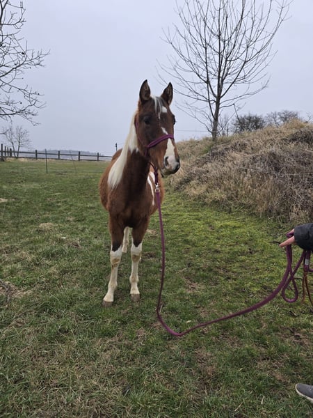 ✨ Sucht ein neues Zuhause ✨ 🐴 Paint Horse Hengst Farbe: Bay Tobiano Cash ist ein absolut cooler, junger Hengst mit einem tollen Charakter Er zeigt sich neugierig, aufgeschlossen, lieb, lernwillig und unerschrocken – einfach ein Pferd, das Spaß macht. Kinderlieb 🐶 Kennt Hunde 🚜 Kennt Traktoren & Autos Anhängerfahren kennt er ebenfalls Regelmäßig beim Schmied Wächst im Herdenverband auf Cash ist für jeden Spaß zu haben, möchte immer gefallen und bringt beste Voraussetzungen mit, um einmal ein zuverlässiger Freizeit- oder Allround-Kumpel zu werden. Ein junger Hengst mit viel Charme, der seinem Menschen gefallen möchte und Freude an gemeinsamer Arbeit hat Papiere Besitz er natürlich auch 😉 diese können gerne eingesehen werden bei Interesse