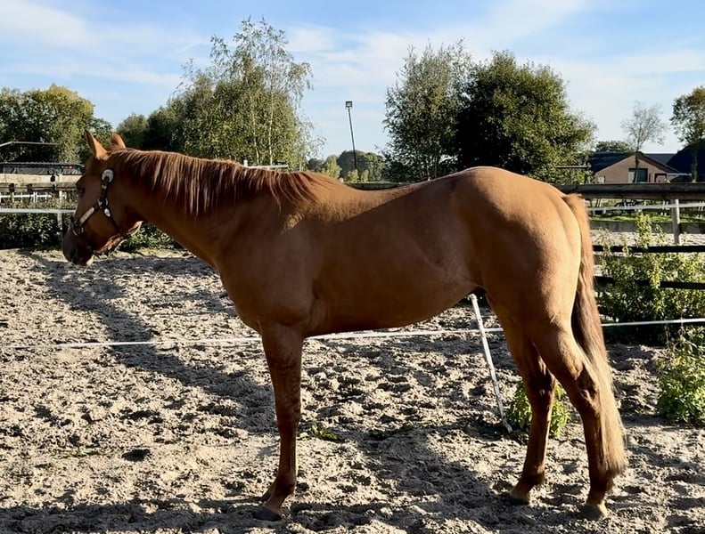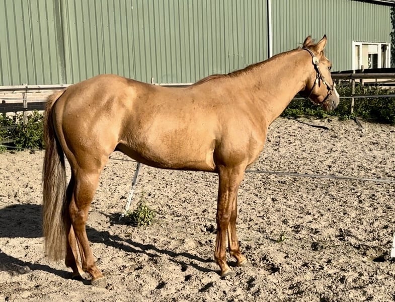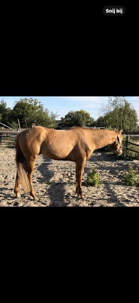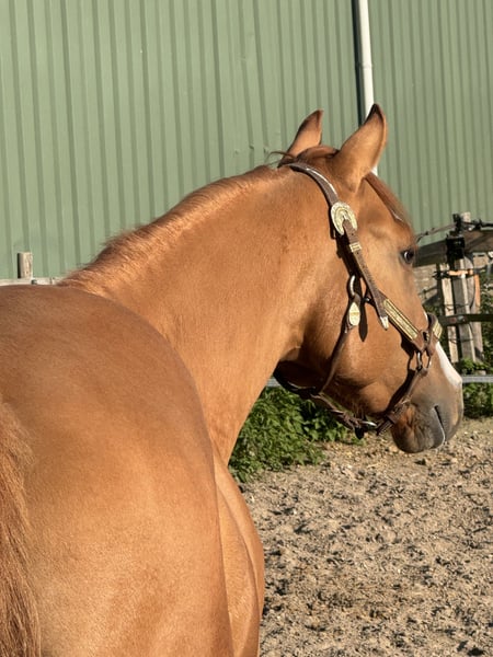 Blair is a 3-year-old red dun APHA stallion. He currently measures 152 cm. We bred him ourselves, and his mother is also present here. He is a sweet horse to handle and well-behaved in the stable. He is still completely untrained.