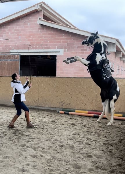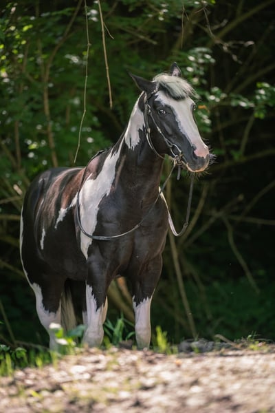 KIDS CLASSIC BADGER Stunning American Paint Horse, solid (despite that, very calm), 9 years old. Height: 15.0 hh / 15.1 hh at the withers. IMPORTANT GENETICS (son of ERC KOLOR ME KOOL, who passed away a few years ago). He participated in the futurity (morphology class) at just 6 months old at Verona Horse Fair, winning the class and placing second in MOST COLOR! US DOCUMENTS and COGGINS TEST up to date. An exceptional horse with a heart of gold! I am looking for a five-star family, I want the best for him because he truly deserves it! He loves jumping, enjoys going for walks... fearless in every situation. He is regularly ridden in a halter and free in the paddock. He has been with me since he was 6 months old. Always barefoot (never shod). Therefore, he has only one owner! He is in perfect health, the only reason I am looking for a new family is because I have made different life choices. NO TIMEWASTERS OR DEALERS, please. For more information, contact +39 3917059140.