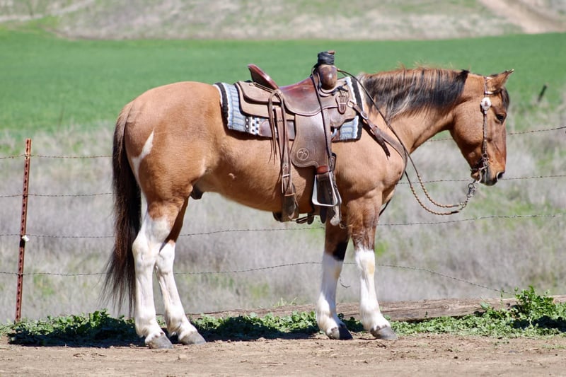 ONLINE AUCTION Place your bids at www.PlatinumEquineAuction.com Starting Bid $3500 Auction ends March 30th, 2025 Need a new saddle? Check out White Rock Saddles on our website or Facebook! Boogie is an eye catching, 14.2HH dun paint gelding at just 9 years old, he has many miles left to travel! Boogie is a certified ranch horse, he’s been out long miles looking for cattle, he will cross anything out on the trail, he has a great medium pace to him, and will travel the trails all day long. You can open and close gates from his back, sort cows, and do anything you need to. He has been branded off of and rope some outside too. boogie is most comfortable out in the countryside, doing a job for his rider! In the arena, he is very user friendly. He knows both leads, has smooth easy gaits, and a soft feel in the bridle. He carries his head collected. Moves off one handed direct rein, as well as leg pressure. He has impeccable ground manners, stands tied, good for farrier, bathing and will let you clip his face. He will load up into a two horse straight load, effortlessly. Boogie is an outstanding little horse, ready to continue his ranch work job, or he would be a great prospect to go into the rodeo world, I could see him being a great team roping, or breakaway horse! Boogie is located in Bitterwater, CA. for more info, or to schedule a visit with him, contact Cheyenne Rey 831-537-8746. ONLINE AUCTION Place your bids at www.PlatinumEquineAuction.com Starting Bid $3500 Auction ends March 30th, 2025 Need a new saddle? Check out White Rock Saddles on our website or Facebook!