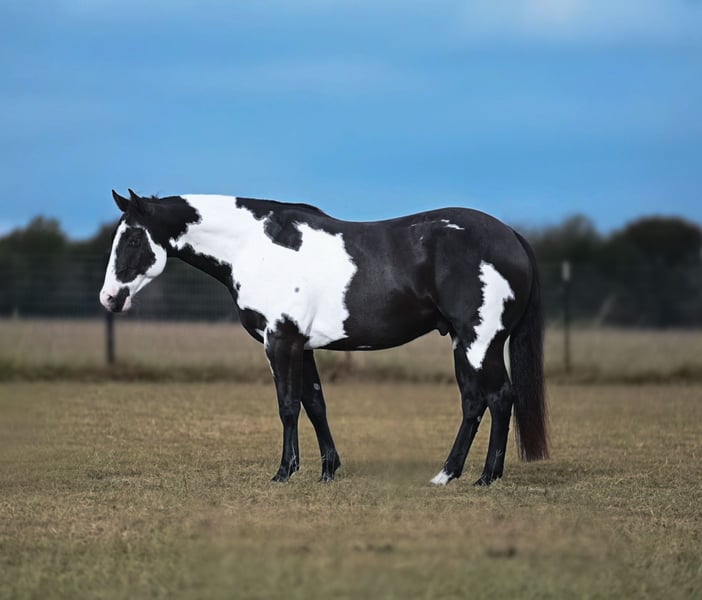 ⚜️𝐓𝐇𝐄 𝐅𝐀𝐋𝐋 𝐇𝐄𝐑𝐈𝐓𝐀𝐆𝐄 𝐂𝐋𝐀𝐒𝐒𝐈𝐂⚜️ Happening now thru MONDAY | NOVEMBER 3rd - Available EXCLUSIVELY on HorseBid's website! For more details and to register visit: www.Horsebid.com CONSIGNOR CONTACT: Coyote Hollow Ranch LLC 209-342-7061 LOCATION: Mount Vernon, TX BREED: Paint REGISTERED: No COLOR: Black and white HEIGHT: 15 AGE: 9 GENDER: Gelding 🔥 Elvis – The Kind of Horse Everyone Falls in Love With** 🔥 Meet Elvis, a one-of-a-kind paint gelding with color and markings that turn heads everywhere he goes. He’s just as gentle as he is striking — the kind you can trust to take care of the whole family. Elvis has been used extensively outside and knows what a day’s work is. He’s been used to doctor sick yearlings, check cattle, and handle any ranch task with a calm, steady mind. Out on the trail, he’s absolutely solid — crosses water, rough terrain, bridges, and anything else you point him at without hesitation. He’s kid safe, family approved, and the same horse every single day. Elvis stands quiet for the farrier, bathes and clips with ease, and loads and hauls like a pro. Whether you’re looking for a dependable partner for ranch work, a safe mount for your kids, or a beautiful gelding to enjoy on the weekends, Elvis checks every box. ✅ Gentle for anyone ✅ Ranch and trail proven ✅ Easy to shoe, bathe, and load 💥 Safe. Broke. Beautiful. That’s Elvis. 💥