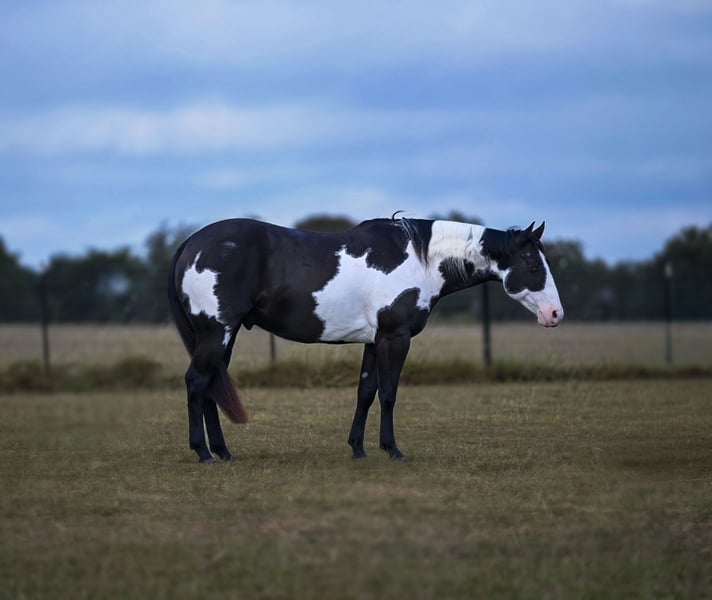 ⚜️DER HERITAGE CLASSIC IM HERBST⚜️ Läuft jetzt bis MONTAG | 3. NOVEMBER – Exklusiv auf der Website von HorseBid verfügbar! Weitere Details und Anmeldung unter: www.Horsebid.com VERKAUFERKONTAKT: Coyote Hollow Ranch LLC 209-342-7061 STANDORT: Mount Vernon, TX ZUCHT: Paint Zugelassen: Nein FARBE: Schwarz-weiß GRÖSSE: 15 hh ALTER: 9 Jahre GESCHLECHT: Wallach 🔥 Elvis – Das Pferd, in das sich jeder sofort verliebt 🔥 Lernen Sie Elvis kennen, einen einzigartigen Paint-Gelding mit auffälligem Farbenspiel und Markierungen, die alle Blicke auf sich ziehen. Er ist ebenso sanft wie beeindruckend – der perfekte Partner, auf den die ganze Familie vertrauen kann. Elvis wurde umfangreich im Gelände eingesetzt und kennt die Anforderungen eines Arbeitstages. Er hat kranke Fohlen behandelt, Rinder kontrolliert und jede Ranch-Aufgabe mit ruhiger Gelassenheit gemeistert. Im Gelände ist er absolut zuverlässig – durchquert Wasser, unebenes Terrain, Brücken und alles, was Sie ihm zeigen, ohne Zögern. Er ist kindersicher, familiengeeignet und bleibt jeden Tag gleich zuverlässig. Elvis steht ruhig beim Hufschmied, lässt sich problemlos waschen und beschneiden, lädt und transportiert wie ein Profi. Ob Sie nach einem verlässlichen Partner für Ranch-Arbeiten, einem sicheren Reitpferd für Ihre Kinder oder einem schönen Gelding für die Wochenendausritte suchen – Elvis erfüllt alle Anforderungen. ✅ Sanftmütig für jeden ✅ Bewährt im Ranch- und Trailsport ✅ Einfach zu beschlagen, zu waschen und zu verladen 💥 Sicher. Brav. Schön. Das ist Elvis. 💥