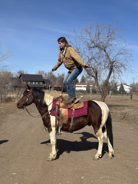 Disponible en la subasta en línea de caballos en www.DOTMagicHorseAuction.DOT com ¡Las pujas están abiertas ahora hasta el martes 17 de febrero! — ¡También disponible la opción de compra inmediata! *El precio final será determinado en la plataforma de la subasta* Información de contacto del consignador: Dynamite Horses, tel. 970-632-3644 Ubicación: Ft. Collins, Colorado ★★ MOUSE ★★ Mouse es uno de esos raros caballos castrados que cumple con todos los requisitos: tranquilo, fiable, versátil y un auténtico placer en el establo. Desde su sólida formación hasta su carácter inquebrantable, es el tipo de caballo que puedes sacar después de un descanso, montar y disfrutar sin pensarlo dos veces. Este apuesto ejemplar tiene un buen manejo y cabalga suave en la boca, con un paso, trote y galope equilibrados. Se mueve con facilidad con tu ayuda de las piernas (definitivamente más parando que yendo 😜), responde a las riendas de cuello y tiene una parada suave con tu asiento y voz. Mouse tiene un cruce de pasos laterales y empieza a trabajar en las transiciones de galope con cambios de mano, círculos en galope y está perfeccionando sus cambios de rienda en vuelo. También puede llevar una bandera, caminar sobre lonas o dejarte colgar de él. Ha sido expuesto a casi todo: tráfico, cochecitos, bicicletas, corredores, perros, banderas, lonas y trabajo con ganado. Se ha usado para revisar cercas, empujar vacas y manejar cuerda. Cruza agua, puentes y cualquier obstáculo que le indiques sin dudar. En el campo o en la pista, se mantiene firme y concentrado, convirtiéndose en un compañero confiable en cualquier entorno. Además, ha hecho paseos en montaña y le fue muy bien; vio mucha fauna y se mantuvo calmado y relajado. En tierra, Mouse es tan amigable como pocos. Es el primero en saludarte en la puerta, se lleva bien con todos los caballos en el prado y es tan fácil de manejar como de montar. Mouse es la definición de un caballo castrado versátil, bien entrenado, con buena cabeza y actitud dispuesta — del tipo que puedes llevar en cualquier dirección y confiar en que cumplirá con su trabajo. Ven a conocer a este caballo especial en persona y descubre por qué pensamos tanto de él!!