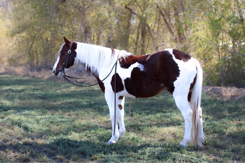ONLINE AUCTION Place your bids at www.PlatinumEquineAuction.com Starting Bid $3500 Auction ends December 15th, 2024 Need a new saddle? Check out White Rock Saddles on our website or Facebook! Pinto beans is the absolute kid horse! He’s SAFE SAFE SAFE! Pinto beans has been the baby sitter around our place we bring him out for all the kids and beginners. From trail riding down the road or giving rides at the family parties he’s our go to. Pinto beans is 9 years old he stands 14h tall he’s built like a like bulldog quarter horse short,stocky, big hip with a little head. He’s got the coolest paint color with a long mane and tail that touches the ground and a kind dark eye. We’ve used him also on the ranch from rounding cows up or pushing steers up at the roping practices. Beans has also been rode in the arena he knows his leads, he will lope big pretty circles. He’s been around the barrels, flags, tarps, traffic, he’s absolutely safe for any level rider will be safe everyday of the week and 100% reliable. Beans is easy to shoe, saddle , bathe , load and haul with no issues. He will be straight legged no bumps or blemishes and 100% sound. If you are looking for your next family horse pinto beans is your guy don’t miss him. Contact Lauren Lara 915-474-5453 with any questions. Located in El Paso, TX. ONLINE AUCTION Place your bids at www.PlatinumEquineAuction.com Starting Bid $3500 Auction ends December 15th, 2024 Need a new saddle? Check out White Rock Saddles on our website or Facebook!