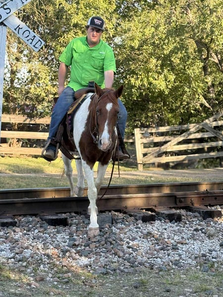 ONLINE AUCTION Place your bids at www.PlatinumEquineAuction.com Starting Bid $3500 Auction ends November 16th, 2025 Need a new saddle? Check out White Rock Saddles on our website or Facebook Boots is a 10 year-old sorrel tobiano paint gelding, standing at 14 hands tall. He will catch anyone’s eye anywhere you decide to take him with his stunning color. He would be a great family horse as that’s what he has been for the last two years. He’s been many miles on trails all over. He is a safe horse looking for a lifelong friend. Boots has been used for lessons, trail riding, wagon races and much more. He is more whoa than go but if you ask him to trot and lope he will do it for you and stop when you ask! He goes through anything you point him to go through or over. Rides out alone or in a group. Very good in town and through traffic. He can sit forever and still ride off with no funny business. If you can sit up there and hold his reins you and him will get along! Boots has absolutely no buck, rear, or kick! Loads like a champ and unloads great. He also stands well for the farrier. Boots is a reliable pretty boy, making him a great addition to any family! Come see him for yourself or we can schedule a FaceTime to meet him! Call or text Makayla with MW Horses at 254-434-8650. Need hauling? We got a list of reliable haulers around the US! Located in Poolville,Texas. ONLINE AUCTION Place your bids at www.PlatinumEquineAuction.com Starting Bid $3500 Auction ends November 16th, 2025 Need a new saddle? Check out White Rock Saddles on our website or Facebook