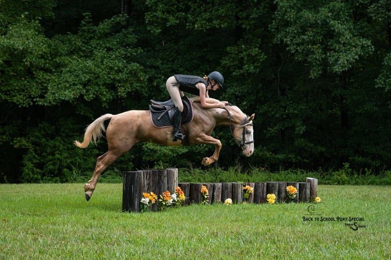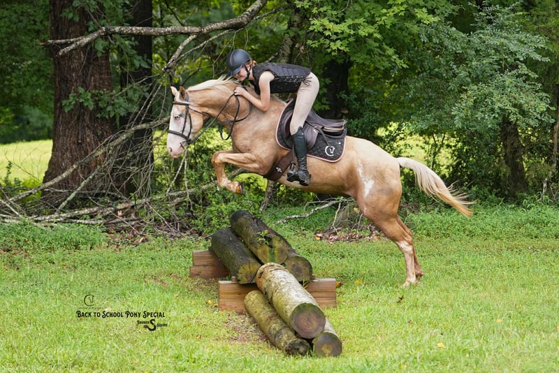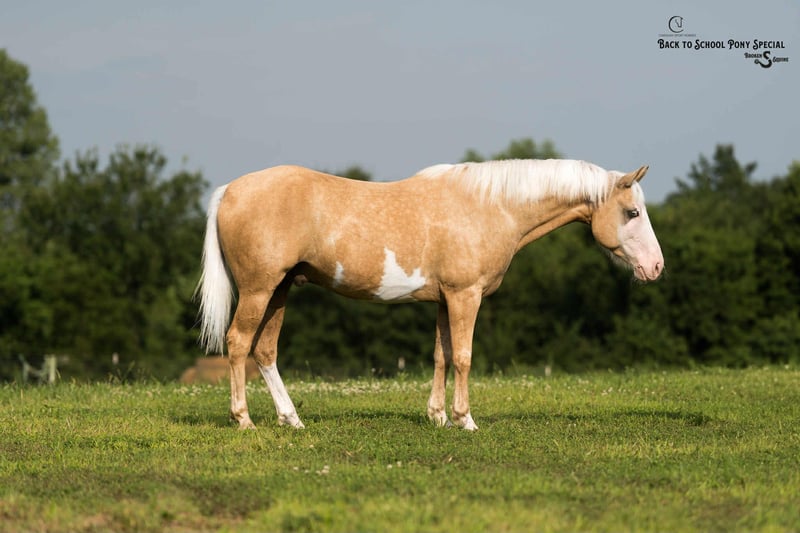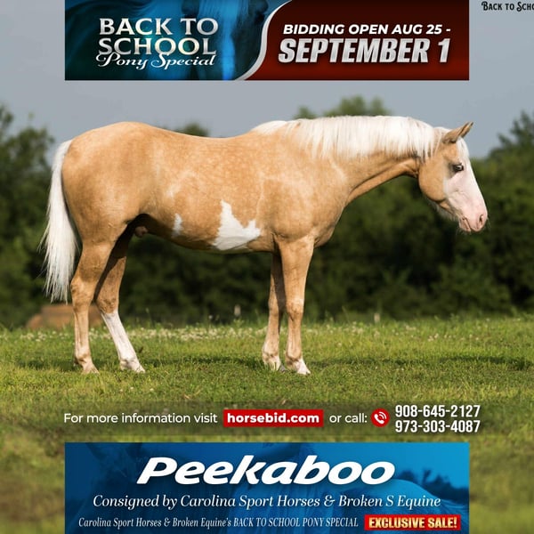 𝐂𝐚𝐫𝐨𝐥𝐢𝐧𝐚 𝐒𝐩𝐨𝐫𝐭 𝐇𝐨𝐫𝐬𝐞𝐬 & 𝐁𝐫𝐨𝐤𝐞𝐧 𝐒 𝐄𝐪𝐮𝐢𝐧𝐞'𝐬 📚𝑩𝒂𝒄𝒌 𝒕𝒐 𝑺𝒄𝒉𝒐𝒐𝒍 𝑷𝑶𝑵𝒀 𝑺𝒑𝒆𝒄𝒊𝒂𝒍📚 Happening now thru MONDAY | SEPTEMBER 1st - Available EXCLUSIVELY on HorseBid's website! For more details and to register visit: www.Horsebid.com CONSIGNOR CONTACT: Carolina Sport Horses & Broken S Equine Kieran 908-645-2127 or Beau 573-303-4087 LOCATION: Clover, SC BREED: Paint REGISTERED: No COLOR: Palomino Paint HEIGHT: 14.1 AGE: 11 GENDER: Gelding Peekaboo is an 11 year old Paint gelding standing 14.1 hands high. This horses resume is as unique as his looks! He has seen a days work on the ranch, packed kids around in lessons, done lots of 4h events, summer camps, and has even gone out fox hunting! This horse is an incredible partner to have when it comes to jumping. He moves like a hunter, with the bravery of a seasoned event horse. He’s the kind of horse that you can enjoy any discipline on and be safe doing it. He’s just as happy being painted and dressed up like a unicorn as he is jumping on the cross country course, or working cattle. In the ring, Peekaboo is straightforward and easy. He has three smooth and comfortable gaits, great brakes, and picks up both leads easily. He is broke very well both English and western. Under English tack he will ride round in the bridle, or on a loose rein. He is schooling first level dressage tests and will jump around a course. Under western tack, Peekaboo has a great neck rein, spin, nice big stop, and lopes off easily. On the cross country course, he is a blast! He is brave, honest, and enjoys being out there. He will always jump, and is happy to help his rider out of a bad spot. On the trails, Peekaboo is a solid citizen. The kids take him out bareback in a halter and ride all over the farm. He will swim, cross streams, ride into town, and is safe in traffic. We have taken him double with the kids in the saddle to ride into town after dinner for ice cream, and he doesn’t blink an eye at a thing. In the barn, Peekaboo is a barn favorite! He is very used to kids, dogs, and other animals running all about. He’s a good boy for all the usual barn tasks, and is a total pleasure to have around. Peekaboo lives outside in a mixed herd of mares and geldings, is easy to catch, and gets along well with others. He’s an easy keeper that has no maintenance or vices. Clean recent vet check on file