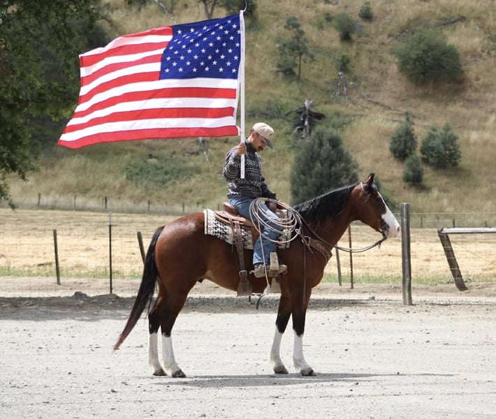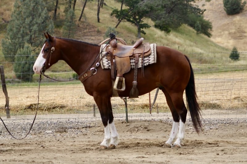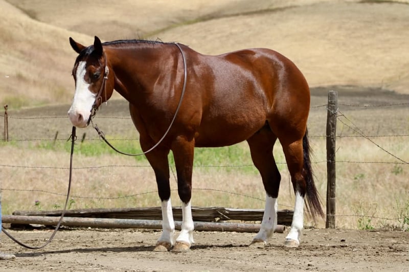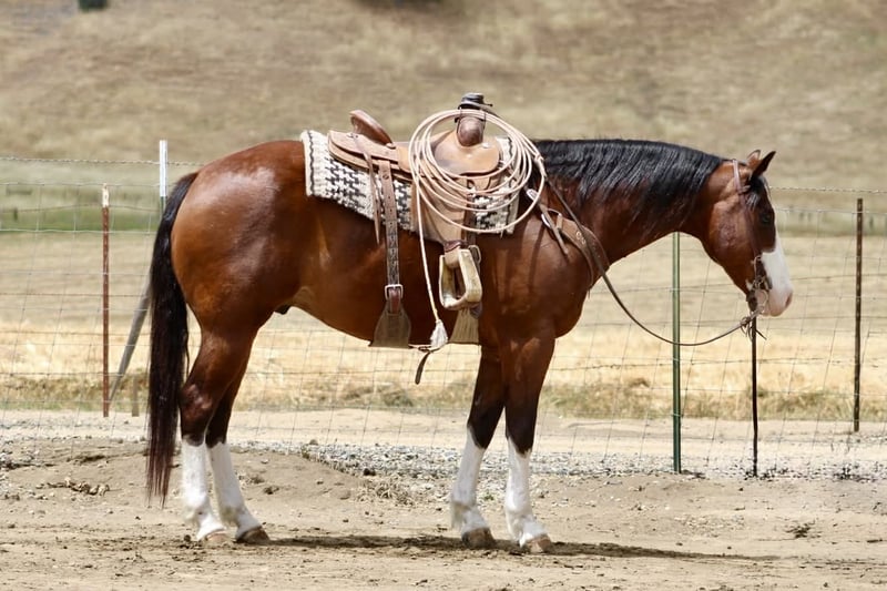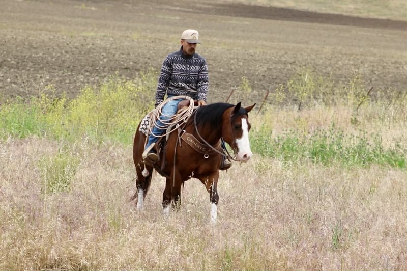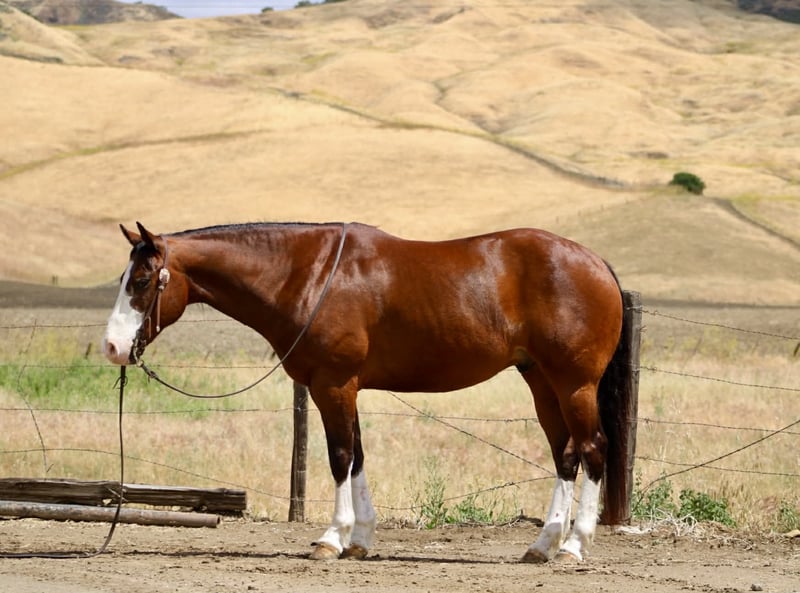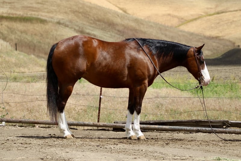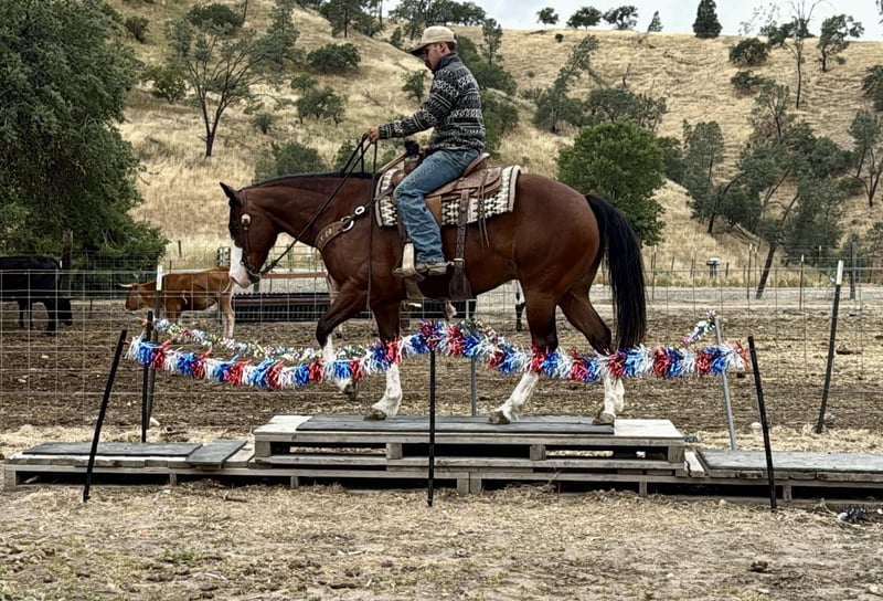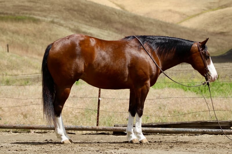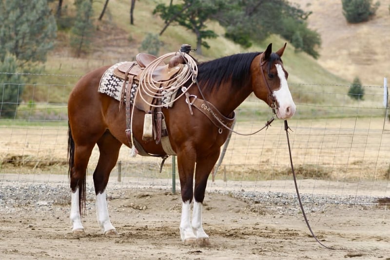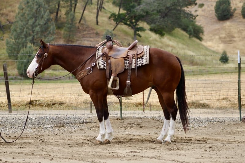 "AVAILABLE ON ONLINE HORSE AUCTION AT www DOT PlatinumEquineAuction DOT com BIDDING OPEN NOW thru SUNDAY | MAY 10TH! *Final price will be determined on auction site* CONSIGNOR CONTACT INFO: Longhorn Ranch 831-537-1915 LOCATION: Paicines, CA Champ “Built to handle the world—and look good doing it.” RGS Champ is a 2015 APHA bay overo gelding that brings together presence, mind, and usability in a way that’s hard to come by. He’s built with balance and substance, the kind that looks right from every angle. That rich bay color paired with his overo pattern gives him a sharp, eye-catching look. Champ has a natural confidence about him. He’s quiet, aware, and tuned into what’s around him without being reactive. He’s the kind that thinks first, stays honest, and keeps his rider in a good spot. From the ground up, he’s the kind that makes ownership easy. He stands tied like he’s got nowhere else to be, saddles up quiet, and handles hauling, bathing, farrier, and vet work without any fuss. He settles into a stall or pasture the same way—no pacing, no nonsense—just a gelding that fits in and goes about things right. Under saddle, Champ rides the way a broke horse should. He’s smooth, balanced, and comfortable, with a soft feel in the bridle and a willing attitude. He moves out with a steady, natural stride, picks up both leads clean, and carries himself level without needing to be held together. His stop is correct, his turnaround is clean, and he backs with ease. Nothing forced, nothing overdone—just a solid foundation that’s been put there the right way. He’s the kind you can ride every day and appreciate, or pull out after time off and go right back to work without having to tune on him. Where Champ really stands out is how he handles the world outside the arena. He’s been ridden down busy streets and around traffic, including cars and everyday commotion, and stays steady and confident. He doesn’t get overwhelmed or look for trouble—he stays focused and goes on with his job. Out on the trail, he’s proven and reliable. Hills, rocks, brush, and rough terrain are all part of his routine. He travels out with purpose, stays sure-footed, and keeps his rider in a good position from start to finish. Ride him alone, in a group, leading or following—he stays consistent and dependable. We’ve also taken the time to introduce Champ to obstacles, and he handled it all with great composure. Tarps, flags, and other distractions are met with a willing, thinking attitude. He takes a look, processes it, and moves forward without overreacting. On top of that, he’s been used to gather cattle and understands having a job. He’s comfortable moving livestock and working in an open setting, adding to his versatility and making him a horse you can put to use when needed—not just one to ride around. Backing all of this is breeding that includes Colonel Back N Black and strong Two Eyed Red Buck influence—lines known for producing horses with ability, versatility, and good minds. Champ reflects that in the way he carries himself and handles every situation he’s put in. He’s not a horse that needs explaining. He’s the kind you step on and understand right away. Solid. Honest. Dependable—with just enough presence to make you proud to own him. Come meet him in person or reach out to set up a video chat—we’re happy to show him to you. Nationwide shipping available with reputable haulers. Dina at Longhorn Ranch Paicines, CA 831-537-1915