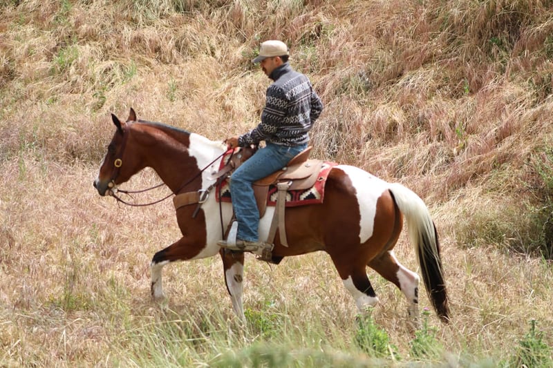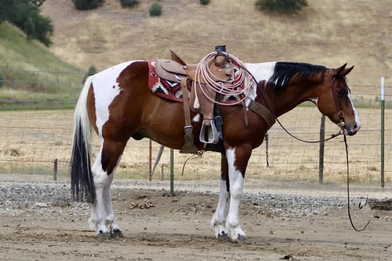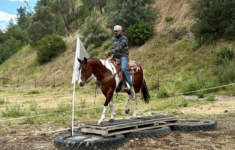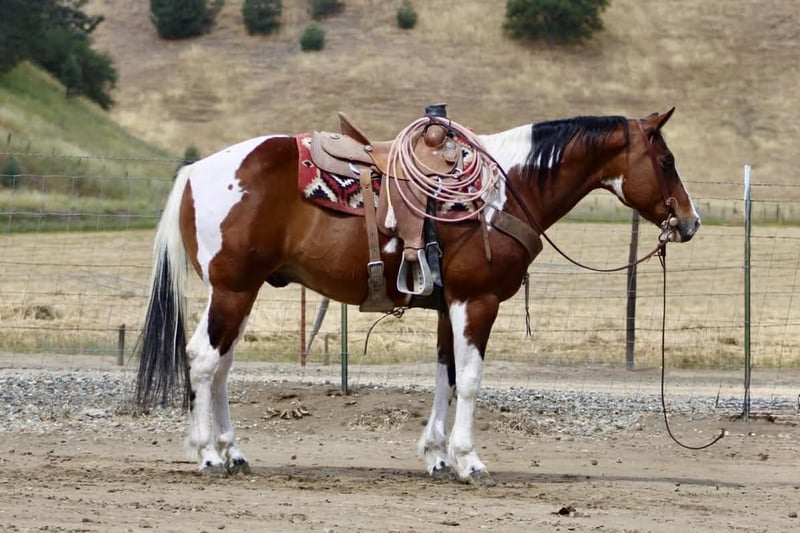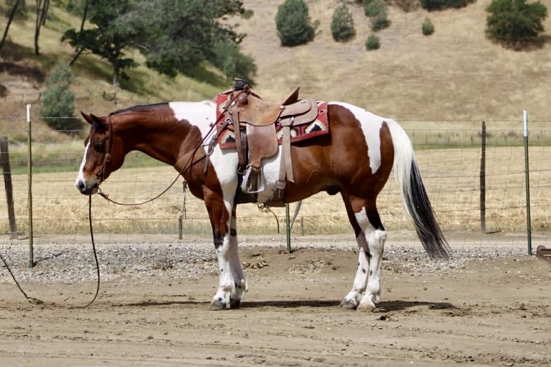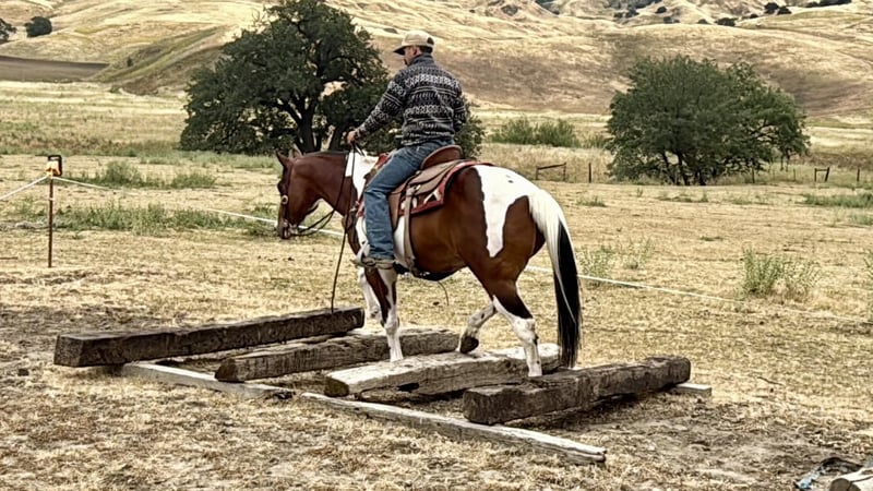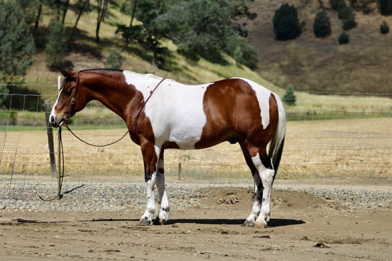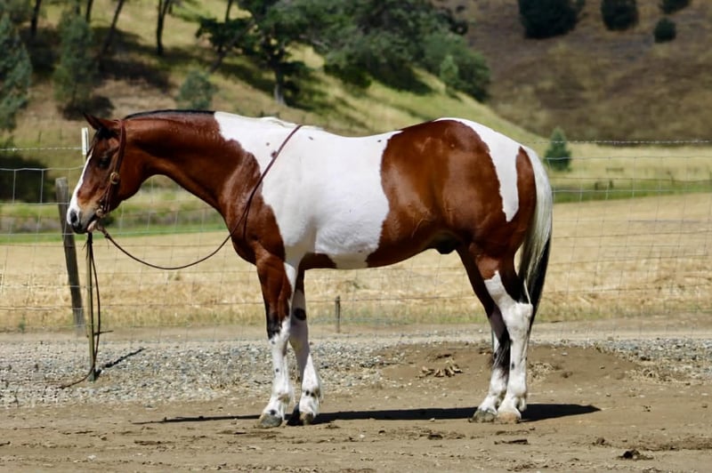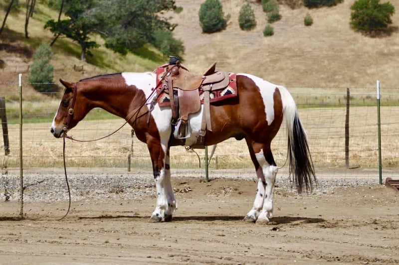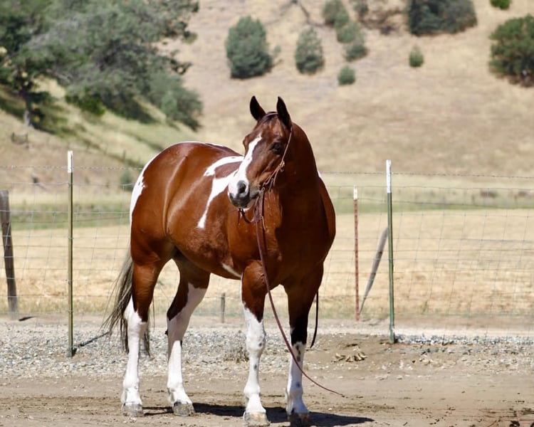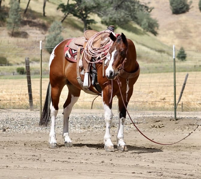 "AVAILABLE ON ONLINE HORSE AUCTION AT www DOT PlatinumEquineAuction DOT com BIDDING OPEN NOW thru SUNDAY | MAY 10TH! *Final price will be determined on auction site* CONSIGNOR CONTACT INFO: Longhorn Ranch 831-537-1915 LOCATION: Paicines, CA Big Mac “Dependable by Nature, Built the Right Way — Big Mac” Some horses you ride… and some horses just feel right from the start. Big Mac is one of those. 11 Years old and Standing just under 15.1 hands and made stout, this tri-color paint has the kind of look that gets noticed, but it’s the way he rides that really sets him apart. He’s steady, straightforward, and easy to get along with from the moment you step on. In the arena, he keeps things simple and consistent. He has a comfortable, easy pace, picks up his leads clean, and responds without needing much effort. He stops when asked, turns correct, and backs soft. Everything feels smooth and natural. Ride him with others or take him out by himself—he stays the same either way. He’s easy to keep, does well stalled or turned out, stands tied quietly, and is simple to tack up. Outside, he handles the kind of country most horses have to think about. Logs, trees, narrow trails—it doesn’t change him. He’s seen wildlife and everyday commotion and takes it in stride without getting bothered. He’s been used checking cows and moving pairs, and he’s comfortable around livestock and other animals. Obstacles like bridges, tires, and pool noodles are nothing new to him—he goes through them quiet and willing. Big Mac is a gelding you can count on to be consistent, kind, and enjoyable every time you ride him. He’s the kind that fits into your program without skipping a beat and quickly becomes one you reach for. Dina at Longhorn Ranch 831:537:1915 Paicines ca Nationwide shipping available with reputable haulers. Come see him in person or give us a call—he’s an easy one to appreciate.