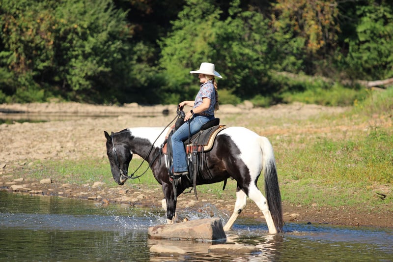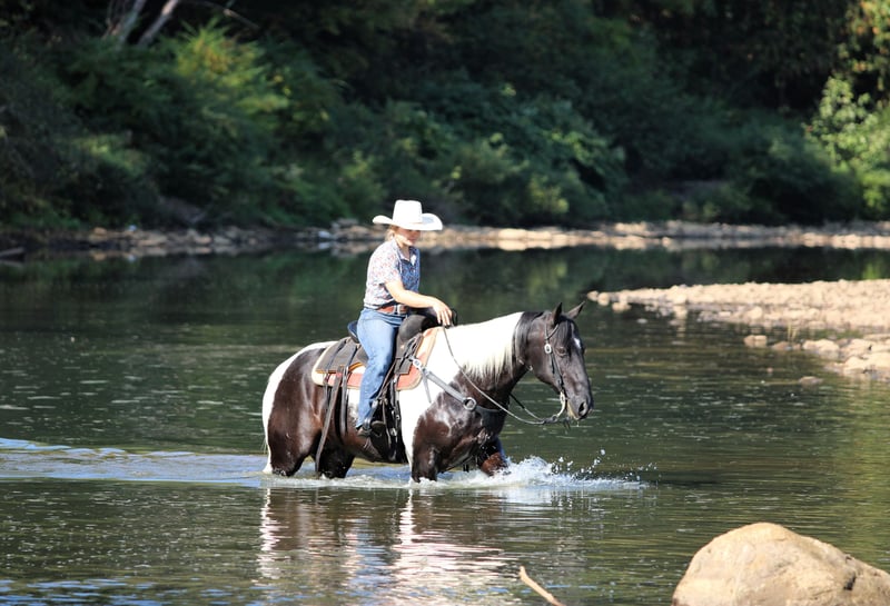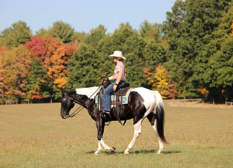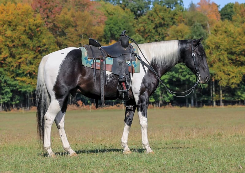 🍂 𝓐𝓾𝓽𝓾𝓶𝓷 𝑨𝑳𝑳 𝑺𝑻𝑨𝑹 𝑳𝑰𝑵𝑬𝑼𝑷 🍂 Happening now thru MONDAY | OCTOBER 6th - Available EXCLUSIVELY on HorseBid's website! For more details and to register visit: www.Horsebid.com CONSIGNOR CONTACT: LT Equine 724-664-5327 LOCATION: Miola PA BREED: Paint REGISTERED: No COLOR: Black and white Tobiano HEIGHT: 15.1 AGE: 10 GENDER: Gelding If you're looking for a fantastic trail horse with many miles under his belt for any level rider than Dice is your man! Dice has been a trail horse his whole life, he’s taken all levels of riders all over the countryside. He is a been there done that kind of horse. He is very chill and relaxed and takes the toughest trails with ease! Standing 15.1 hands tall and nicely built he can carry all sized riders. Dice has a fantastic loose one hand neck rein. He moves off leg and listens perfectly to his ques! He has a nice slow trot and a very smooth lope, dice will also arena ride where he can see his head and pick up both leads making him a great candidate for a lesson horse! Dice has very good ground manners, and is smart and respectful of your space. He will pick up all four feet with ease and is great for the farrier. Where dice really excels is on the trail, if your wanting a safe, confident, and quiet trail horse look no farther! He will go out alone, or in a group, lead or follow. He is traffic safe and not spooky or scared of the mud. If you have any more questions feel free to call or text! Thank you and give Dice’s video a watch!
