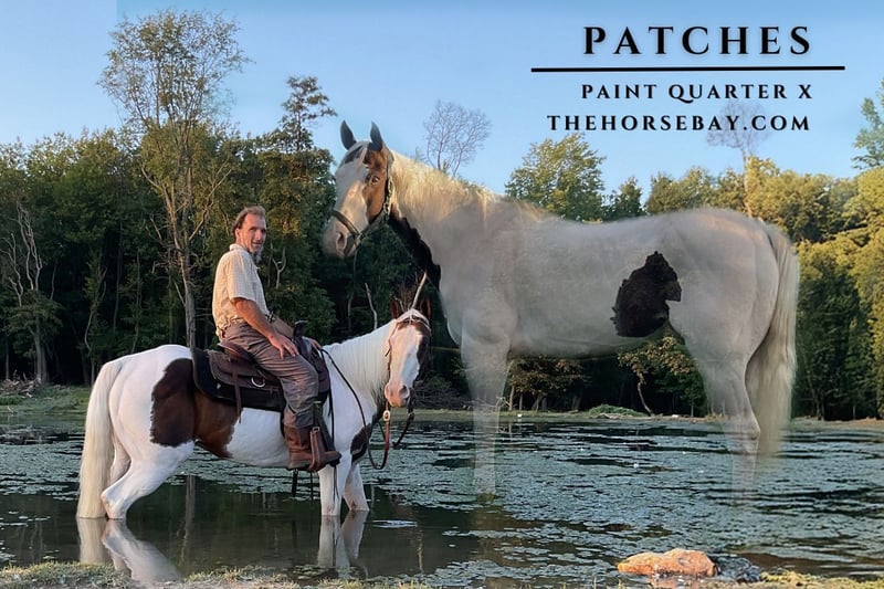 OPEN BIDDING ON THEHORSEBAY,COM. SALE ENDS ON 10/02 @ 2:45PM CT. More information is available on the website, including an UTD vet inspection, Coggins, video, images, and the owner's contact information to ask questions, request information, or make arrangements to come to visit. Patches is 15.1 gelding that’s about as fun and handy as you’ll find one ,if you’re looking for brains , stamina and looks all in one solid package you have come to the right place , he is a kitten in the barn and on the ground and tacks up and rides out very quiet , he is good for a trail ride or down the road in traffic , he will go anywhere you point him , Patches has a super fun cowboy mode when asked too , we wouldn’t recommend him for your grandmother or very young children to ride , although he is absolutely safe and will never try to hurt anyone , our 14 year old son rode him a lot and did just fine , prior to us acquiring Patches he had some professional reining training and ran some barrels but he ended up with an amateur rider therefore needed a little tuning , he has a super easy neck and backs up nice , he will go into and through water without hesitation, all in all Patches is a nice gelding to have in the barn , he is always the first to greet you and loves attention from any of his people friends no matter how small , feel free to call us to arrange a visit with Patches and get ready to fall in love because you have no choice when you meet him.