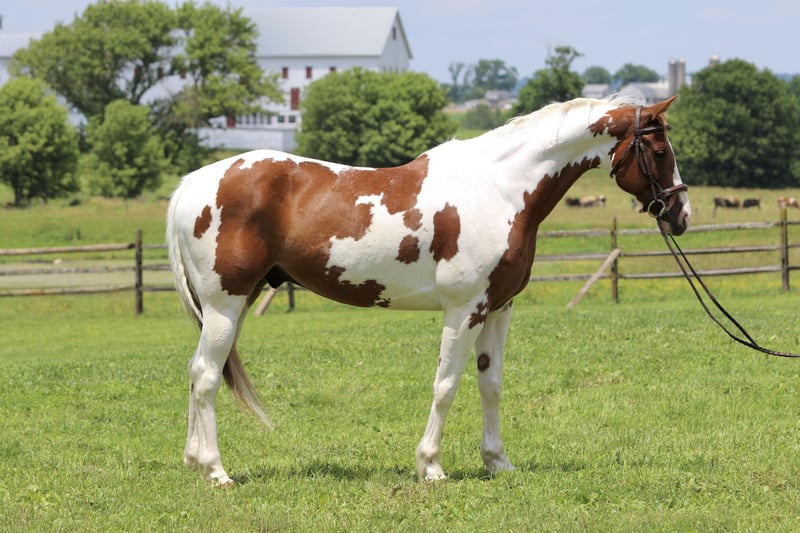 "AVAILABLE ON ONLINE HORSE AUCTION AT www DOT MagicHorseAuction DOT com BIDDING OPEN NOW thru TUESDAY | AUGUST 19TH! - BUY IT NOW AVAILABLE! *Final price will be determined on auction site* CONSIGNOR CONTACT INFO: Juli Hubik 717-875-2061 LOCATION: Gap, PA Check out this stunning boy! ✨ Django ✨ is an 11-year-old, 15.3–16hh Paint gelding. This guy has all the right markings, and he’s put together very nicely. He rides English, Western, he’s a trail master, and he drives! He’s sweet and respectful on the ground, and he doesn’t have a mean bone in his body! On the trail, Django always has a happy-go-lucky attitude. His ears are always perked forward! He has a forward way of thinking; however, he’s not one to run away with you. He’s a brave one and will gladly lead the group—through anything! He’ll go through water, bridges, ditches, mountains, and tunnels. He’s seen deer, hikers, dogs, bicycles, flags, traffic, and just about everything else you can think of while out on the trail! He’s sensible, sure-footed, and steady. He has lots of miles under his belt and has primarily done trail work as his job! He loves it and is never the type of horse to try to get out of work. He would make an ideal candidate for hunter paces, fox hunting, and paper chases! In the ring, Django has been learning a lot with us! He’s smart as a whip and seems to learn more with every ride. He’s always willing to learn and happy to work. He hasn’t had a lot of experience in the ring, but he has a solid WTC in both directions. He moves off leg, responsive to leg to side pass, and spin. He knows the difference between using leg to move forward- versus off of it. He’s been smoothing out his transitions, his trot is adjustable, and he’s so fun to ride! We could see him excelling in dressage with his naturally fancy way of moving, forward-thinking attitude, and willingness to learn. Django has also been lightly started over jumps and could definitely progress in that direction. He’s been cross-country schooling and was honest and straightforward. With more muscle building and direction, we have no doubt he’ll be an absolute star! He’s not suited for complete beginners at this time—solely because of his forward, responsive nature. However, for a confident junior or adult amateur who likes a self-motivated horse, he would be a perfect fit! He’s not dangerous or naughty in any way, shape, or form. In the barn, Django is always sweet and easy to handle. The kids can lead him, groom him, braid his mane, and pick his feet! He’s such a gem—truly a kind-hearted horse who can continue in any direction! Django is UTD on Shots, Coggins, Dentist, Deworming, and Farrier. He is sound and healthy with zero health problems or concerns. He has one old scar that does not affect him. Call or text Juli for more info- 717-875-2061