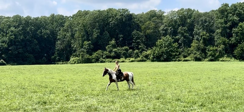 "AVAILABLE ON ONLINE HORSE AUCTION AT www DOT MagicHorseAuction DOT com BIDDING OPEN NOW thru TUESDAY | AUGUST 19TH! - BUY IT NOW AVAILABLE! *Final price will be determined on auction site* CONSIGNOR CONTACT INFO: Juli Hubik 717-875-2061 LOCATION: Gap, PA Check out this stunning boy! ✨ Django ✨ is an 11-year-old, 15.3–16hh Paint gelding. This guy has all the right markings, and he’s put together very nicely. He rides English, Western, he’s a trail master, and he drives! He’s sweet and respectful on the ground, and he doesn’t have a mean bone in his body! On the trail, Django always has a happy-go-lucky attitude. His ears are always perked forward! He has a forward way of thinking; however, he’s not one to run away with you. He’s a brave one and will gladly lead the group—through anything! He’ll go through water, bridges, ditches, mountains, and tunnels. He’s seen deer, hikers, dogs, bicycles, flags, traffic, and just about everything else you can think of while out on the trail! He’s sensible, sure-footed, and steady. He has lots of miles under his belt and has primarily done trail work as his job! He loves it and is never the type of horse to try to get out of work. He would make an ideal candidate for hunter paces, fox hunting, and paper chases! In the ring, Django has been learning a lot with us! He’s smart as a whip and seems to learn more with every ride. He’s always willing to learn and happy to work. He hasn’t had a lot of experience in the ring, but he has a solid WTC in both directions. He moves off leg, responsive to leg to side pass, and spin. He knows the difference between using leg to move forward- versus off of it. He’s been smoothing out his transitions, his trot is adjustable, and he’s so fun to ride! We could see him excelling in dressage with his naturally fancy way of moving, forward-thinking attitude, and willingness to learn. Django has also been lightly started over jumps and could definitely progress in that direction. He’s been cross-country schooling and was honest and straightforward. With more muscle building and direction, we have no doubt he’ll be an absolute star! He’s not suited for complete beginners at this time—solely because of his forward, responsive nature. However, for a confident junior or adult amateur who likes a self-motivated horse, he would be a perfect fit! He’s not dangerous or naughty in any way, shape, or form. In the barn, Django is always sweet and easy to handle. The kids can lead him, groom him, braid his mane, and pick his feet! He’s such a gem—truly a kind-hearted horse who can continue in any direction! Django is UTD on Shots, Coggins, Dentist, Deworming, and Farrier. He is sound and healthy with zero health problems or concerns. He has one old scar that does not affect him. Call or text Juli for more info- 717-875-2061