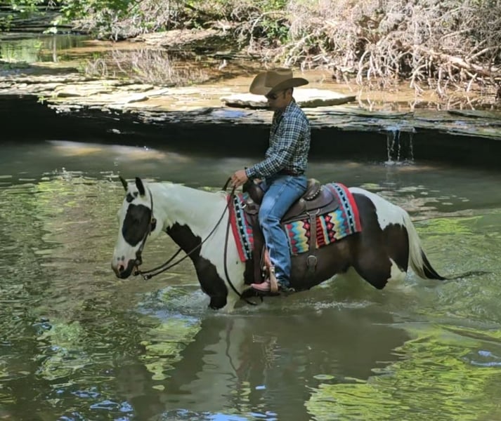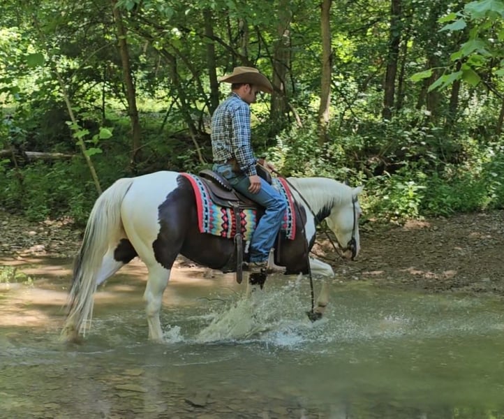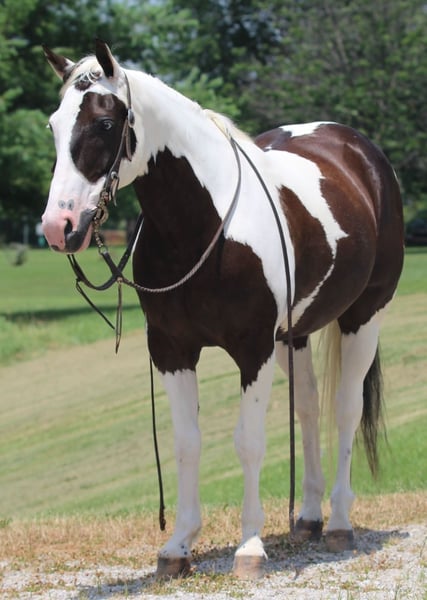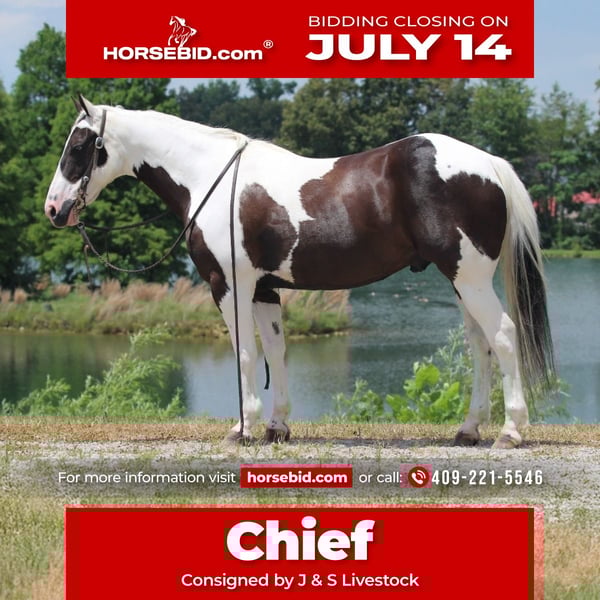 ♦️ MID-SUMMER SHOWCASE ♦️ Happening now thru MONDAY | JULY 14TH - Available EXCLUSIVELY on HorseBid's website! For more details and to register visit: www.Horsebid.com CONSIGNOR CONTACT: J & S Livestock 409-221-5546 LOCATION: Robards KY BREED: Paint REGISTERED: Yes REGISTERED NAME: Tsalagi Equa Asgoli COLOR: Black & white HEIGHT: 14.2 AGE: 12 GENDER: Gelding Looking for a splash of color in your life? Let me introduce to you chief. Chief is an astonishing, 12-year gelding with enough color and flash to get you noticed everywhere you go. Chief stands 14.2 hands & weighs around 1100lbs. He is an excellent mover and flat kneed. He execute all maneuvers with ease. Smooth walk, trot, & canter picks up both leads. Side passes and will work gates. Chief has spent most of his life as a trail mount; riding fences in Oklahoma for an older women. Who owned him most of his life. He has been extensively rode over the obstacle courses, bridges, logs and has been ridden around machinery and traffic. We have used him to pony & desensitized the babies in our colt starting program. Chief loads, bathes and stands like a perfect gentleman for the farrier. Chief sells up to date on vaccinations, worming, coggins, & farrier. Don't miss your chance to own this cool horse. Call today to set up an appointment to meet Chief.