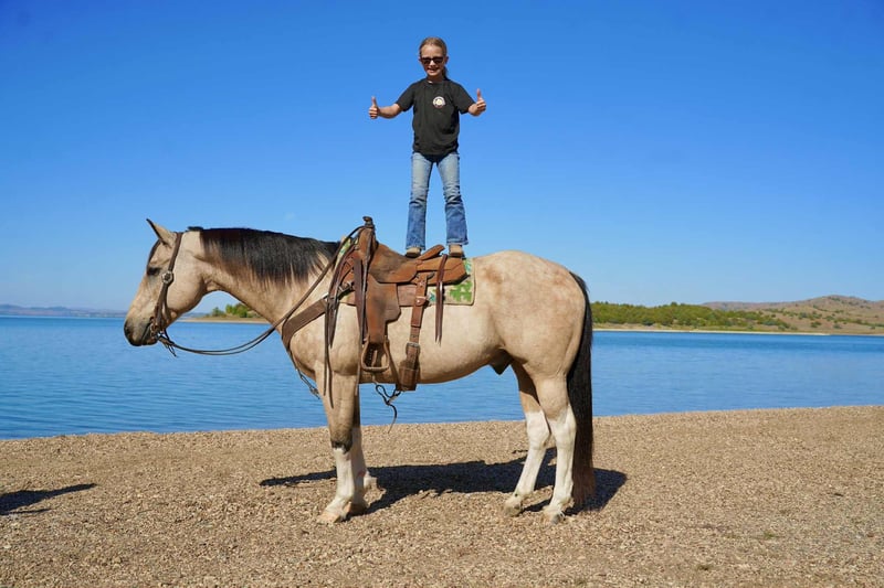 ♦️ L'AMÉRICAIN Fall Classic ♦️ Se déroule actuellement jusqu'à LUNDI | 20 OCTOBRE - Disponible EXCLUSIVEMENT sur le site de HorseBid ! Pour plus de détails et pour vous inscrire, rendez-vous sur : www.Horsebid.com CONTACT DU VENDUER : Pam Petersen 605-838-7124 LIEU : Corsica, SD RACE : Paint ENREGISTRÉ : Non COULEUR : Appaloosa crème TAILLE : 15,1 hh ÂGE : 11 ans SEXE : Hongre Champ est un cheval de randonnée de premier ordre, il a été emmené partout dans le comté pour des balades, du camping et des parcs de randonnée. Il est doux et sûr pour tous les âges et tous les niveaux, sans comportement farfelu, il préfère avancer lentement mais sait se montrer volontaire lorsque demandé. Il a une excellente personnalité, adore l’attention, et s’entend bien avec les autres chevaux. Facile à attraper, bon pour le maréchal-ferrant et le vétérinaire, c’est un cheval de randonnée familial, sûr et polyvalent. Appelez ou envoyez un SMS au 605-838-7124.