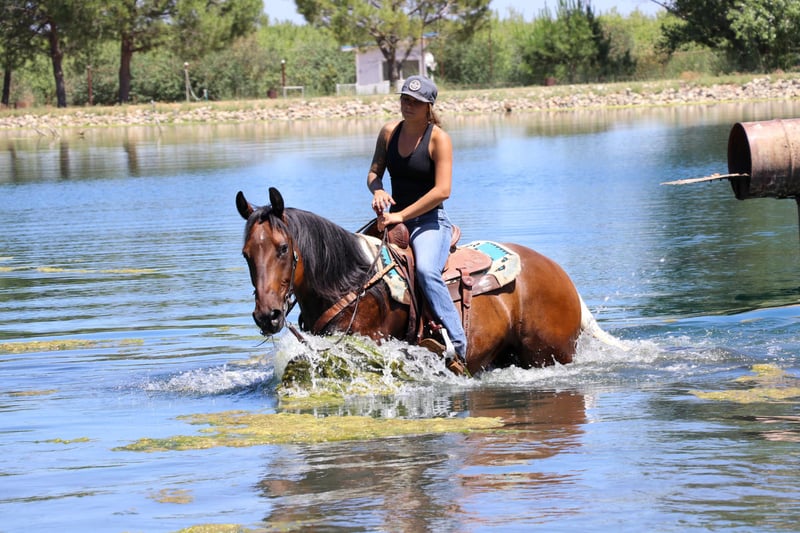 ONLINE-AUKTION Geben Sie Ihre Gebote unter www.PlatinumEquineAuction.com ab. Startgebot $3500 Die Auktion endet am 30. Juni 2024. Brauchen Sie einen neuen Sattel? Schauen Sie sich White Rock Saddles auf unserer Website oder Facebook an! Lernen Sie Amigo kennen, einen 11 Jahre alten APHA-registrierten 15,2-Hand-Wallach. Wenn Sie auf der Suche nach einem Pferd sind, das im Turnierstall Aufmerksamkeit und Bewunderung erregt, dann suchen Sie nicht weiter als Amigo. Dieses prächtige Pferd ist der Inbegriff von Eleganz und Vielseitigkeit, was ihn in jeder Umgebung zu einem Blickfang macht. Amigo ist nicht nur ein Pferd, er ist ein Erlebnis. Sein schickes Aussehen und sein selbstbewusstes Auftreten ziehen die Blicke auf sich und erobern die Herzen, wo immer er auftaucht. Ob in der Arena, auf den Trails oder in der Stadt, Amigo strahlt eine Präsenz aus, die einfach unvergesslich ist. Amigo ist ein erfahrenes Wanderreitpferd mit einer beeindruckenden Anzahl von Erfahrungen im Gepäck. Amigo geht ohne zu zögern überall hin und bewältigt tiefe Bäche, Baumstämme, Brücken und Schlamm mit Leichtigkeit. Er hat einen zügigen, effizienten Gang, der sich perfekt für lange Ausritte eignet, und er wird den ganzen Tag lang nicht müde, egal ob Sie Berge erklimmen oder einfach nur die Pfade in der Nachbarschaft entlang gehen. Amigo ist unbeeindruckt von Fahrrädern, Motorrollern, Spaziergängern, Wanderern, Quads, Sattelschleppern, rauschendem Verkehr und wilden Tieren. Eine von Amigos Lieblingsbeschäftigungen ist das Schwimmen und Spielen im Wasser, wo er sich nach einem heißen Fahrtag gerne abkühlt. Amigo ist auf dem Reitplatz genauso beeindruckend wie auf den Wegen. Sein umfangreiches Training sorgt dafür, dass er sich hervorragend verhält und präzise auf Kommandos reagiert: - Er kennt seine Führungen: Nahtlose Übergänge, die seine Ausbildung unterstreichen. - Slide Stops und Spins: Demonstriert fortgeschrittene Fähigkeiten mit Präzision. - Works Off Your Legs: Reagiert sehr gut auf Beinarbeit. - Backs Up und Side Passes: Perfekt für das Öffnen von Toren und komplizierte Manöver. - Walk/Trot/Lope am losen Zügel: Bietet einen sanften, entspannten Ritt in allen Gangarten. - Sanftes, langsames Schaukeln im Lope: Bietet ein komfortables und begehrenswertes Reiterlebnis, das von allen begehrt wird. Mit seinem natürlichen Talent und seiner Ausbildung ist Amigo bereit, im Turnierstall zu glänzen. Seine Fähigkeiten machen ihn zu einem idealen Kandidaten für Ranch-Reitkurse und andere Wettbewerbe. Seine auffällige Erscheinung, kombiniert mit seinen geschmeidigen Bewegungen und seiner Reaktionsschnelligkeit, wird ihn zweifellos zum Liebling der Richter und Zuschauer machen. Amigo ist ein kräftiges Pferd, das seine Reiter mit Leichtigkeit tragen kann. Seine Größe und Stärke machen ihn zu einer vielseitigen Wahl für eine Vielzahl von Reitern und garantieren Komfort und Vertrauen in jeder Situation. Amigo ist ein seltenes Juwel, das eine unvergleichliche Kombination aus Schönheit, Vielseitigkeit und einem unkomplizierten Wesen bietet. Seine umfangreiche Erfahrung, sowohl im Gelände als auch auf dem Reitplatz, macht ihn zu einer wertvollen Ergänzung für jede Reiterfamilie. Wenn Sie bereit sind, Ihren Stall um einen Show-Superstar zu erweitern, ist Amigo das richtige Pferd für Sie. Er lässt sich kinderleicht in den Anhänger laden. Er kann gesattelt, gestriegelt und gebadet werden. Er ist großartig in einer Box oder auf einer Weide mit anderen. Er ist UTD auf Schüsse, Zähne, Wurmkur, und Schuhe. Kontaktieren Sie uns noch heute, KW RANCH Kamryn 530-852-2032, um einen Besuch zu vereinbaren und Amigo in Aktion zu sehen. Er ist bereit, Sie kennenzulernen und Ihr nächster Pferdepartner zu werden! Das Hotel liegt in Pleasant Grove, CA. ONLINE-AUKTION Geben Sie Ihre Gebote unter www.PlatinumEquineAuction.com ab. Startgebot $3500 Die Auktion endet am 30. Juni 2024. Brauchen Sie einen neuen Sattel? Schauen Sie sich White Rock Saddles auf unserer Website oder Facebook an!