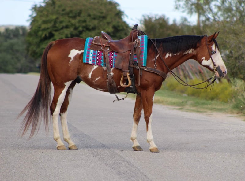 ONLINE AUCTION Place your bids at www.PlatinumEquineAuction.com Starting Bid $3500 Auction ends November 3rd, 2024 Need a new saddle? Check out White Rock Saddles on our website or Facebook! If you’re looking for one that is SAFE for the whole family , seasoned , tried and true then “Flash Gordon “ is the guy for you . He is a 12 year old GORGEOUS one of a kind paint gelding standing 15.2 hds tall . Flash Gordon has two baby blue eyes that are SO pretty. This guy is absolutely uniquely marked and stands out wherever you take him . He checks all the boxes and will be safe for everyone from ages 4 to 85 . He is a true kids horse and absolutely loves kids . Flash has dabbled in a little bit of everything . He has been shown at 4H shows , and open ranch riding shows and also been used in a lesson program. Flash is an absolute blast to take down the trail and really enjoys going down the trail and seeing lots of miles . Ride him in town, in heavy traffic, crowds of people. Out on the trails he will cross logs , water , brush and goes wherever you point him . He’s got a smooth rocking chair lope to him and will lope right out of your hand like butter. He has a smooth little western pleasure jog to him and always low headed. Flash will also go english and has even been taken over small cross rails by the kids. He is truly a ONE of a kind gelding that everyone searches high and low for. Flash Gordon will not disappoint. He’s ready for his new family to enjoy. Flash is UTD on dental, vaccines, and just got a fresh set of shoes put on. Contact us to come try him, or we can set up a FaceTime also . If you need help with transport don’t hesitate to ask we have a list of reputable haulers that can get him safely to your doorstep world wide. Located in Stephenville, TX. Contact M$ Performance Horses Michelle 661-817-9120. ONLINE AUCTION Place your bids at www.PlatinumEquineAuction.com Starting Bid $3500 Auction ends November 3rd, 2024 Need a new saddle? Check out White Rock Saddles on our website or Facebook!