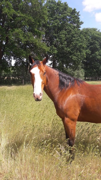 Jack ist 2010 geboren, ca. 1,60 m groß. Er ist seit Absetzer bei mir. Er steht bei mir nur im Offenstall und kommt damit sehr gut zurecht. Im Moment steht er mit vier Stuten zusammen und ist Chef. Mit zwei Jahren habe ich angefangen ihn als Handpferd mit ins Gelände zu nehmen, auch beim Umtrieb unserer Kühe. Mit vier Jahren war er 2x im Profiberitt. Seitdem wird er freizeitmäßig western geritten. Leider fehlt mir inzwischen die Zeit ihm wirklich gerecht zu werden. Ich hatte fast 10 Jahre eine Reitbeteiligung für ihn, aber diese ist jetzt schwanger und wird auch nicht mehr kommen können. Jack braucht eine Bezugsperson die viel Zeit für ihn hat. Er kennt Bodenarbeit, Longe, Platzarbeit und Gelände. Er ist schmiedefromm (barhuf) und kennt den Hänger. Wobei er jetzt länger nicht gefahren werden musste. Zähne wurden im Juni gemacht und die Hufe alle 5 Wochen. Er ist geimpft und entwurmt. Tierarzt ist kein Problem. Er buckelt nicht, steigt nicht und geht nicht durch. Bei der Platzarbeit ist er eher faul, macht aber mit. Meine RB ist ihn sehr viel auf dem Platz geritten, auch oft mit Unterricht. Ich war mit ihm mehr im Gelände unterwegs. Autos und Trecker sind kein Problem. Jack ist voll reitbar und hat keine gesundheitlichen Einschränkungen. Jack ist vom Charakter nicht ganz einfach und eher dominant. Er braucht eine klare und sichere Führung. Unsichere Personen stellt er in Frage, die sollten nicht mit ihm umgehen. Er ist definitiv kein Anfängerpferd, zumindest was den Umgang mit ihm angeht. Auf dem letzten Bild ist der Stammbaum seines Vaters zu sehen. Seine Mama war eine amerikanische bunte Paintstute ohne Papiere. Siehe letzten Fotos. Ich würde ihn gerne mit passendem Westernsattel (California Brand Saddlery) abgeben, der ist im Preis mit inbegriffen. Mir ist es wichtig, dass er ein gutes neues Zuhause bekommt und dort alt werden darf. Weitere Infos gerne telefonisch. Es ist absolut kein Notverkauf und mir liegt seine Zukunft am Herzen. Platz vor Preis.