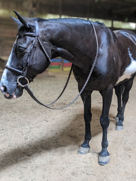 I’m currently looking to find a retirement home for Basil. Basil is an 17-year-old paint gelding cross. While he is still young-ish, Basil has made it pretty clear he’s ready for the easy life. He’s got plenty of spunk left but would be best suited to a non-riding or light riding home. He had an issue in his hind right leg that never fully resolved, so he is walk-trot only. Basil did founder about three years ago. He has a clean bill of health now but must be kept in a dry lot to reduce the risk of foundering again. He has some maintenance needs. Basil is not suitable for a child or a beginner. While he is not malicious, he does have a big personality and can be pushy with timid people. He can also be spooky, so he is best suited for confident equestrians. Basil would make an ideal companion horse or horse for someone looking to do ground work and liberty work. Please reach out for more information. Basil is currently located in Mohnton, PA.
