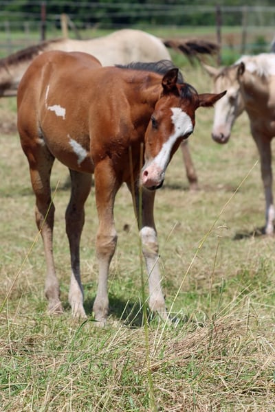 CHEYENNES JUJU PISTOL Baio frame overo stallone APHA Nato: 12.05.2024 Altezza finale circa 150 cm 5 Panel e IMM N/N Ee Aa LWO/N