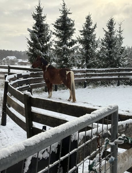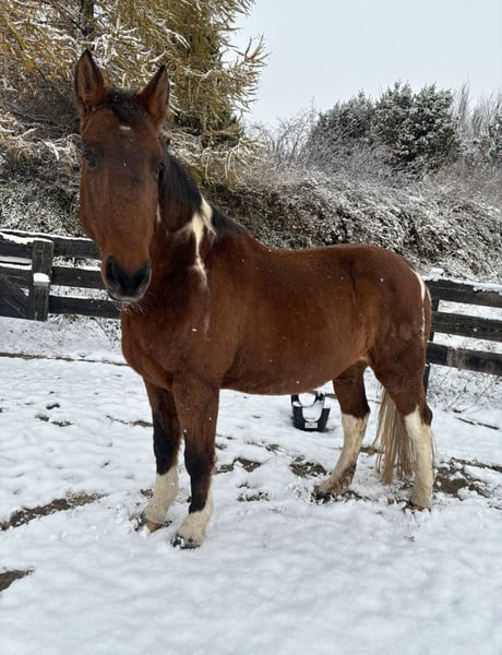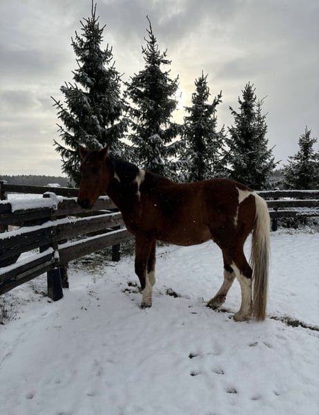 This kind-hearted 19-year-old Paint Mix gelding is looking for a 5-star home with a loving carrot giver! Due to a personal tragedy, I am heartbrokenly searching for a 5-star home for my little treasure! No dealers or commercial interests. He is strictly sold as a companion horse! NO riding horse. He impresses with his completely relaxed, calm, and friendly nature. An absolute sweetheart with a big heart. He leads well, accepts carrots and treats, and enjoys walks and being pampered. His height is approximately 16.1 hh. Due to an old injury, he occasionally relieves weight from his hind leg. However, this causes no restrictions or pain. Veterinary check-up is unremarkable. I wish for him to find a home where he can simply be a horse. He is very easygoing, totally social, and compatible. He would be the perfect companion horse! He is used to box stalls with daily turnout and an open stable. Since movement is very beneficial for him, an open stable would be ideal! Absolutely priority on the right home over price! I also have two blankets that can be included, along with various accessories and feed. If you have questions or are interested, please send a message and come to visit. Please introduce yourself briefly; inquiries like "still available" will not be answered. Adoption only after a prior meeting. It would be wonderful if someone could find him before the New Year!