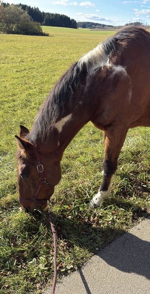Dieser Herzensgute 19 jährige Paint Mix Wallach sucht ein 5 Sterne zuhause mit einem liebevollen Möhrchengeber! Aufgrund eines Schicksalschlages suche ich schweren Herzens für mein Goldstück ein 5 Sterne zuhause! Keine Händler oder sonstiges. Er wird ausdrücklich nur als Beisteller verkauft! KEIN Reitpferd. Er überzeugt durch seinen absolut entspannten, ruhigen und umgänglichen Charakter. Ein absolutes Goldstück mit einem großen Herzen. Führ möhrchen und leckerlies macht er alles. Er liebt es spazieren zu gehen und bettüdelt zu werden. Stockmaß ca. 1,64cm Ich wünsche mir für ihn ein zuhause wo er einfach Pferd sein darf, er ist total unkompliziert, absolut sozial und verträglich. Er wäre der perfekte beisteller! Kennt Boxenhaltung mit Täglichen Koppelgang und Offenstall. Da Bewegung ihm sehr gut tut wäre ein Offenstall ideal! Absolut Platz vor Preis! Ich habe noch 2 Decken die mitgegeben werden können sowie diverses Zubehör / Futter. Bei Fragen oder Interesse einfach anschreiben und vorbeikommen Bitte kurz vorstellen, anfragen wie ,,noch da“ werden nicht beantwortet. Abgabe nur nach vorherigen kennenlernen. Es wäre super wenn sich noch jemand vor Neujahr finden würde