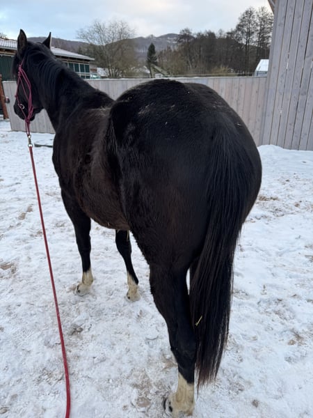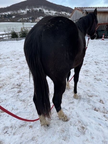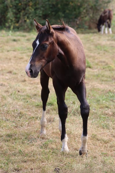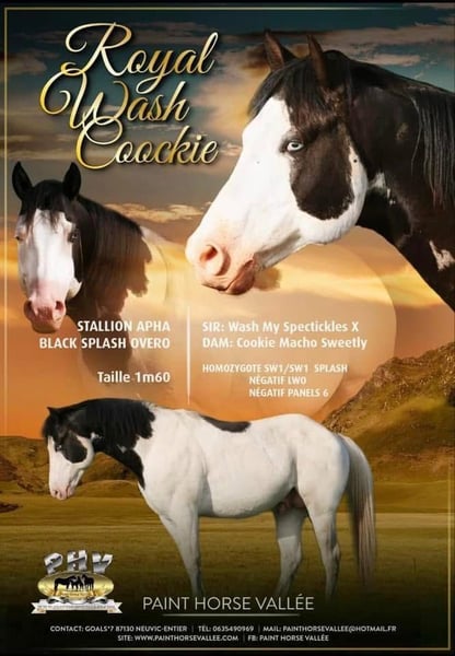 À vendre, un jeune étalon Paint Horse bien construit, né en avril 2024, avec un excellent potentiel pour le Ranch Riding, le loisir polyvalent ou le sport de haut niveau. Il mesure actuellement environ 1,50 m (en croissance) et pèse environ 300 kg. De grande stature, robuste et développé de manière appropriée à son âge. Père : PHV Style Harry Potter (Paint) – lignées à l’ancienne / influencées par la fondation – entre autres Royal Wash Cookie, JJ’s Classic Style, Impressive Mère : Miss Classic Style Fa (Paint, 2014) – fondation correcte, lignées solides de Paint / Quarter Test génétique : 6 panels n/n Se laisse facilement manipuler • régulièrement ferré (découpe) • connaît le pansage, l’attacher, faire des tresses • travail de base en rond de longe • promenade • calme face aux bruits de la ferme (tracteur, chien, etc.) • curieux à son âge, clair dans sa tête Aucun entraînement précoce – il a grandi dans un environnement adapté aux chevaux. Perspectives : • Ranch Riding • Ranch Trail • Loisir polyvalent • Sport de haut niveau • Intéressant aussi pour de plus grands cavaliers Ce n’est pas une vente d’urgence. Il sera castré au printemps, auquel cas il sera vendu en tant que hongre. Priorité au sérieux. N’hésitez pas à me contacter, même si vous êtes déjà intéressé en tant que propriétaire de hongre.